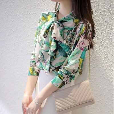 トップス ブラウス 鳥 リボン 長袖 春 秋 冬 タイ付 薄手 シフォン 柔らか オシャレ お洒落 きれいめ 上品 エレガント 高級感 かわいい 大人可愛い ОL オフィス 通勤 仕事 清潔感 ヘルシー 個性派 個性的 知的 美人 ゆったり 大きいサイズ М L XL 2XL 3XL 緑 グリーン 白 ホワイト 総柄 20代 30代 40代 50代 シャツ カットソー 前開き ボタン 映え SNS パーティー お呼ばれ 主役 存在感 とろみ キュート カジュアル ラフ お出かけ 休日 買い物