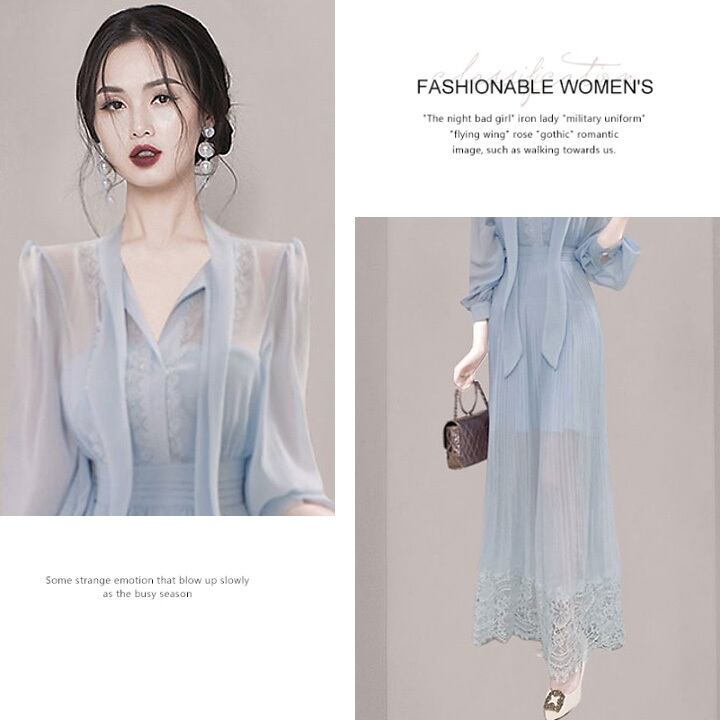秋冬 シフォン ドレス プルオーバー ロングスカート プリーツスカート ロング丈 袖あり 長袖 Vネック 襟なし スリム レギュラー プリーツ レース ファスナー ハイウエスト ポリエステル 異素材MIX シフォン 大人可愛い きれいめ 大人 お洒落 エキゾチック 大人女子 セクシー 無地 秋 冬 20代 30代 レディース 女性用 ママ オフィス ビジネス OL 通勤 デート 休日 パーティー リゾート ホテル 普段使い スタイル モテ 美脚 インスタ映え S M L XL ブルー