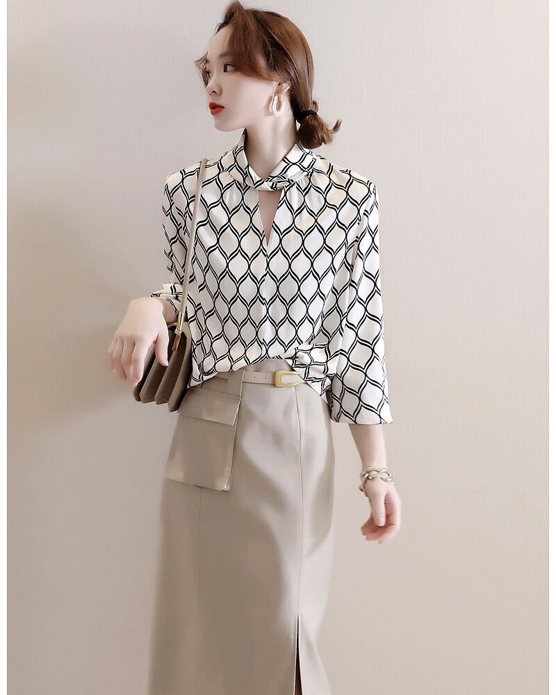トップス ブラウス 長袖 ダイヤ 網目模様 レディース 春 秋 薄手 エレガント きれいめ 上品 オシャレ お洒落 パフスリーブ ОL オフィス 通勤 仕事 ゆったり 大きめ S М L 幾何学 モノクロ 白黒 ホワイト こなれ感 大人可愛い 肌見せ 抜け感 とろみ ゆる 20代 30代 40代 50代 入園 入学式 卒業式 パーティー お呼ばれ 謝恩会 二次会 総柄 個性派 個性的 クール 知的 美人 高級感 存在感 主役 シック モダン レトロ エキゾチック サテン 光沢