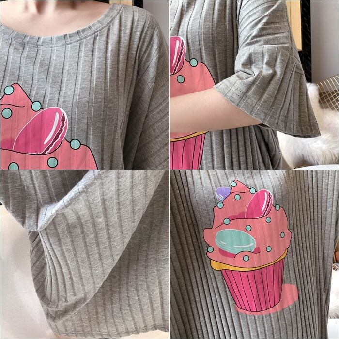 ルームウェア レディース ナイトドレス ネグリジェ パジャマドレス パジャマ ワンピース ワンサイズ フリーサイズ ピンク グレー 灰色 ピーコックブルー 青 ローズレッド パステルカラー シャーベットカラー ラウンドネック 半袖 五分袖 5分袖 フレアスリーブ リラックス ミドル丈 ミドル ミディ丈 ミディ 膝丈 フレア Aライン 体型カバー ママ マタニティ フェミニン ナチュラル キュート ガーリー 大人 大人可愛い 存在感 主役級 デート 休日 お泊り ポップ レトロ かわいい ケーキ プリント