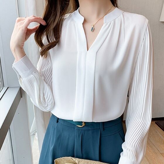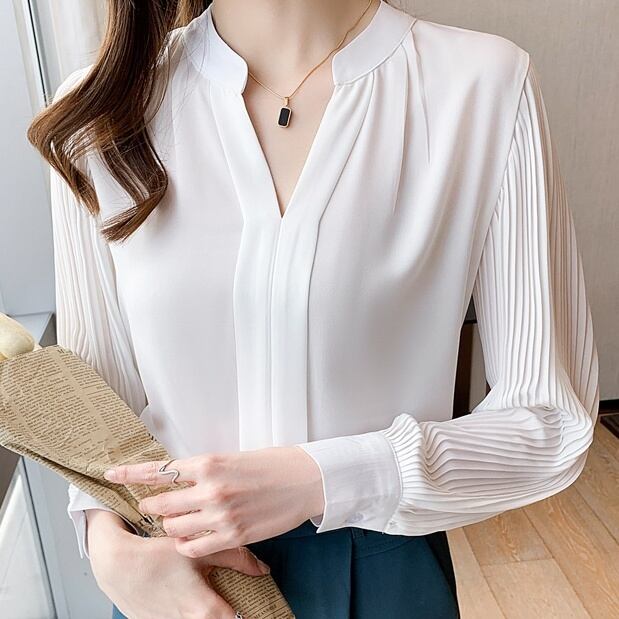 トップス ブラウス シフォン Vネック 長袖 レディース プリーツ 袖 ホワイト 無地 きれいめ 上品 エレガント 高級感 ゆったり 大きめ 大きいサイズ S М L XL 2XL 清楚 オフィス 通勤 仕事 ОL 入園 入学式 卒業式 冠婚葬祭 結婚式 披露宴 二次会 シャツ カットソー かわいい 大人可愛い 大人女子 ガーリー オシャレ お洒落 20代 30代 40代 50代 オールシーズン 春 夏 秋 冬 フォーマル シンプル カジュアル とろみ クール こなれ感 やわらか 着心地