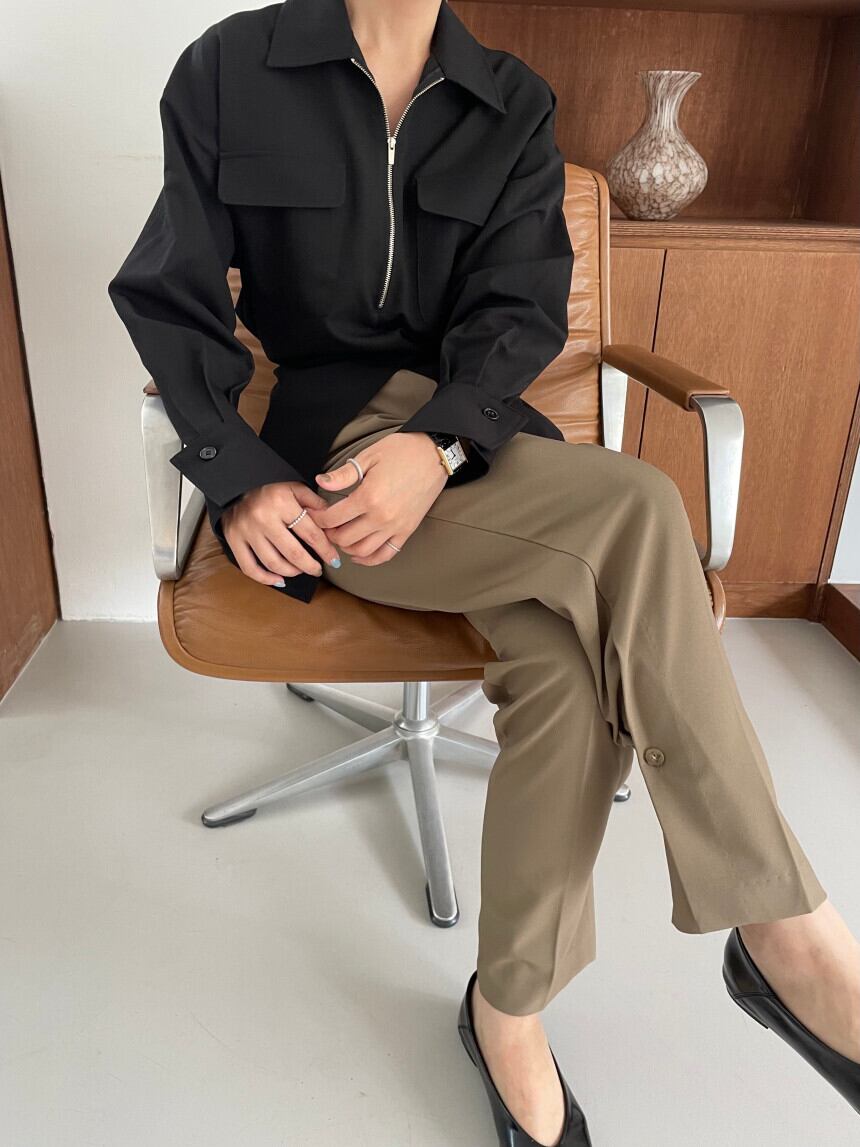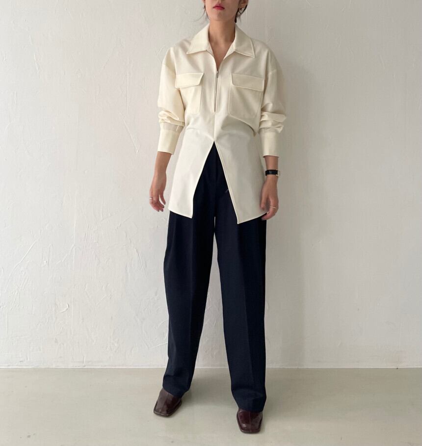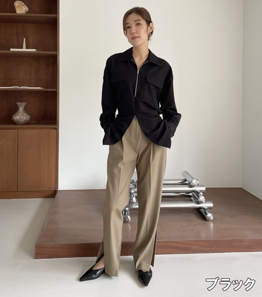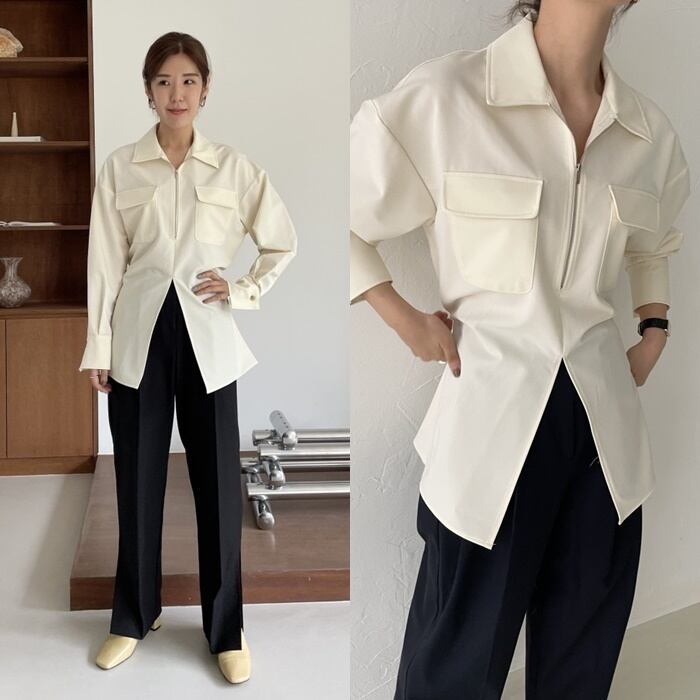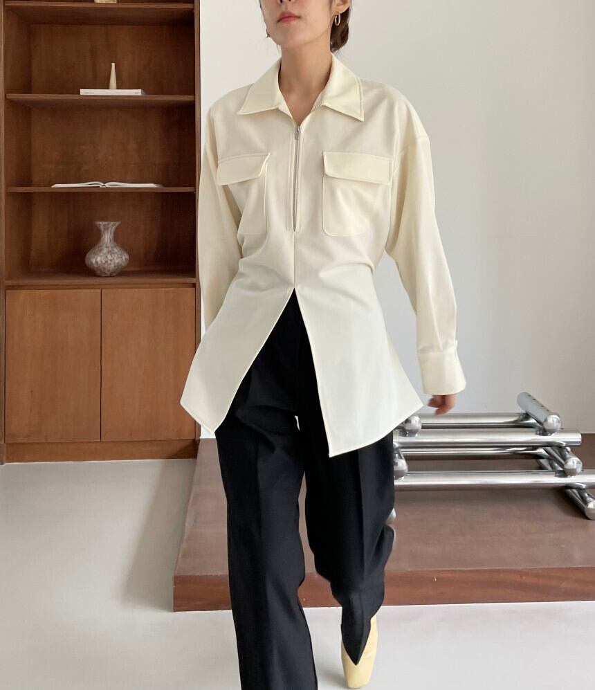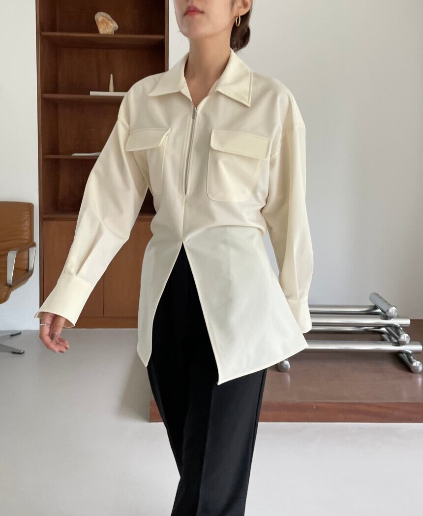 トップス レディース ブラウス シャツ スリット ポロカラー ハーフジップ 胸ポケット プルオーバー バックシャン バックリボン ワンサイズ フリーサイズ ブラック 黒 ホワイト 白 無地 大人カラー 春 秋 長袖 ジップアップ ジッパー ミドル丈 ミディ丈 ゆったり ゆる ルーズ ママ 着やせ 体型カバー フェミニン カジュアル きれいめ きれカジ 大人 大人可愛い モード スタイリッシュ きちんと感 清潔感 デート モテ 休日 お出かけ さわやか 学生 通学 OL 通勤 オフィス 韓国 オルチャン