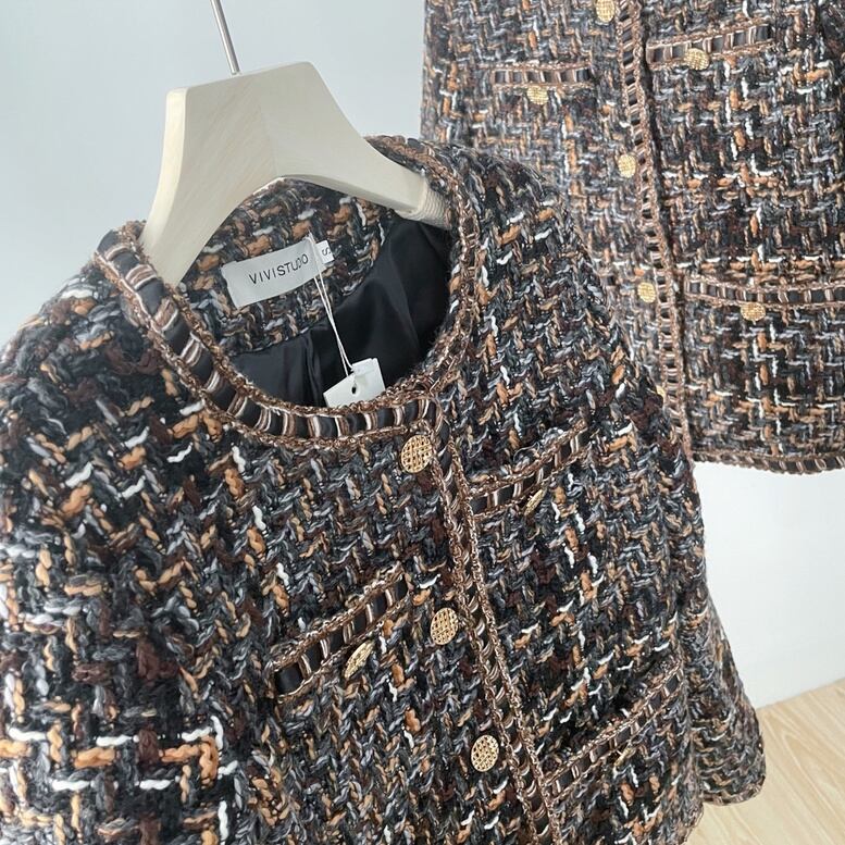 ノーカラーツイードジャケット アウター レディース ジャケット ツイードジャケット ノーカラージャケット ライトアウター ツイード ノーカラー クルーネック 茶色 モカブラウン 大人可愛い きれいめ 上品 エレガント フォーマル ガーリー マニッシュ ルーズ キュート レトロ 春 夏 秋 冬 二次会 お呼ばれ 結婚式 披露宴 セレモニー オフィス ビジネス OL 通勤 学生 通学 デート お出かけ パーティー イベント 女子会 休日 旅行 体型カバー トレンド ゆったり インスタ映え ベイクドカラー