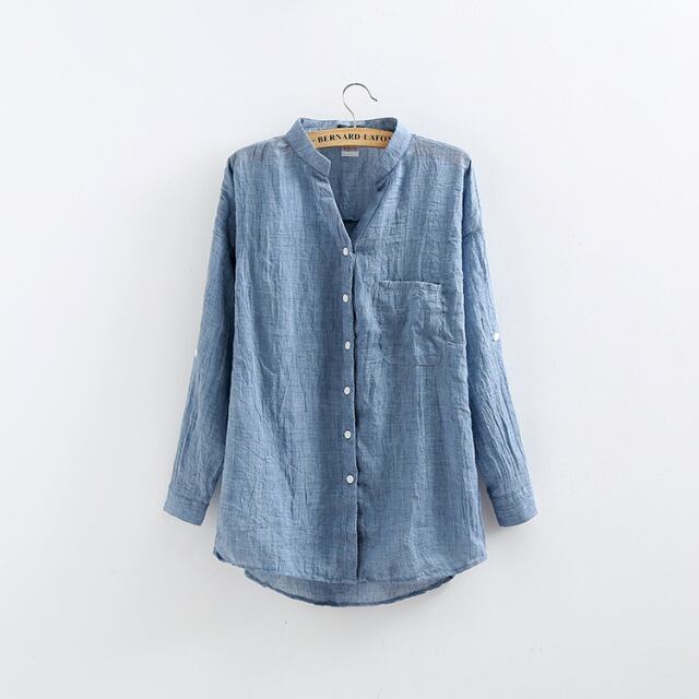 程よい透け感がある大人カジュアルにぴったりなスタンドカラーシャツ。
