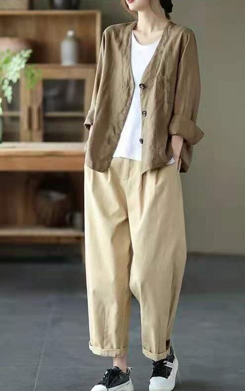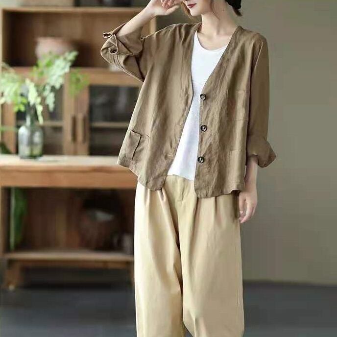 トップス カーディガン 3色 レディース くすみカラー 長袖 ジャケット Vネック ゆったり 大きめ 大きいサイズ М L XL 2XL ベージュ ブラウン 茶色 黒 ブラック 無地 薄手 綿 コットン 春 秋 映え開き ボタン 羽織 オシャレ お洒落 シンプル カジュアル ラフ こなれ感 かわいい 大人可愛い ライトアウター ポケット 30代 40代 50代 60代 上品 レトロ ルーズ モード 普段着 普段使い 秋カラー 休日 お出かけ 公園 買い物 重ね着 リラックス