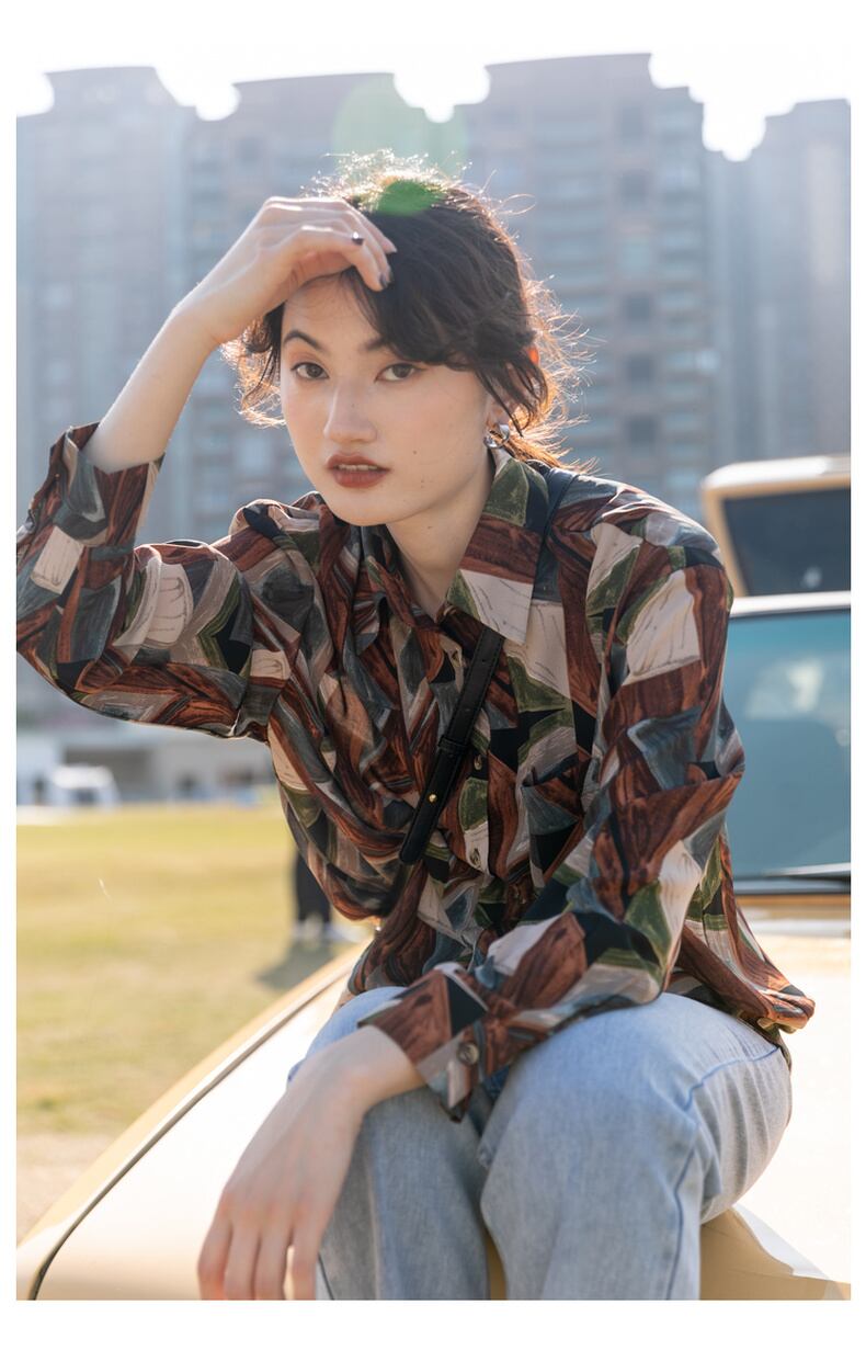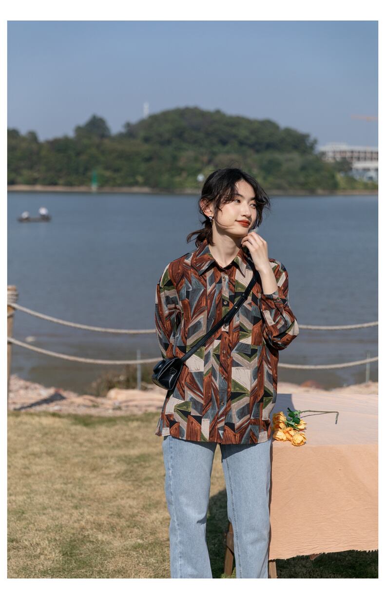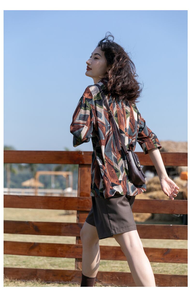 トップス シャツ 5分袖 五分袖 長袖 前開き ボタン ポリエステル かわいい 大人可愛い シンプル 大人 おしゃれ お洒落 かっこいい レトロ エスニック 大人女子 ボーイッシュ スポーティー ルーズ 個性的 クール モード系 主役級 存在感 抜け感 柄 春 夏 秋 20代 30代 レディース 女性用 デート お出かけ 休日 アウトドア リゾート 旅行 海 プール ホテル ガーデン レストラン 普段使い ファッション コーデ スタイル S M L ブラウン