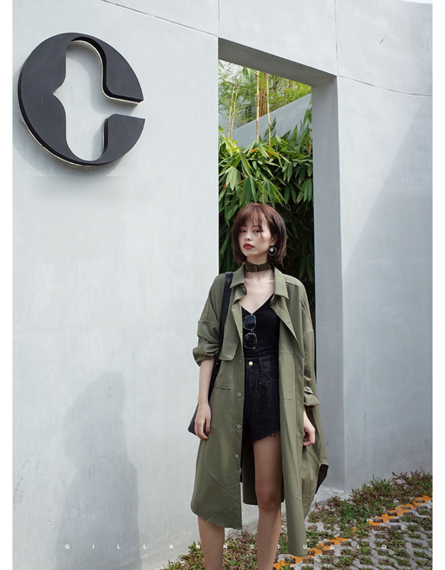 アウター 上着 トレンチコート ミモレ丈 ロング丈 長袖 ドロップショルダー 萌袖 襟付き フレア ワイド ポリエステル 大人可愛い シンプル カジュアル おしゃれ お洒落 かっこいい 大人女子 こなれ感 ラフ ルーズ 個性的 クール モード系 主役級 存在感 抜け感 無地 春 秋 10代 20代 30代 レディース 女性用 デート お出かけ 公園デビュー 女子会 休日 イベント リゾート 旅行 着回し 普段使い 重ね着 韓国系 オルチャン ファッション 体系カバー フリーサイズ ゆったり グリーン