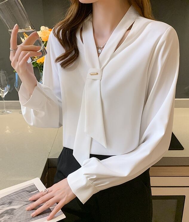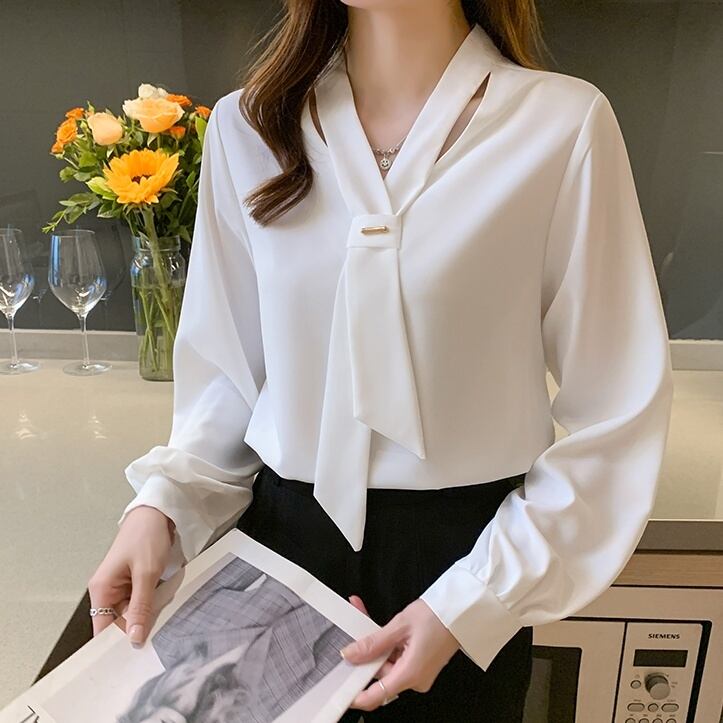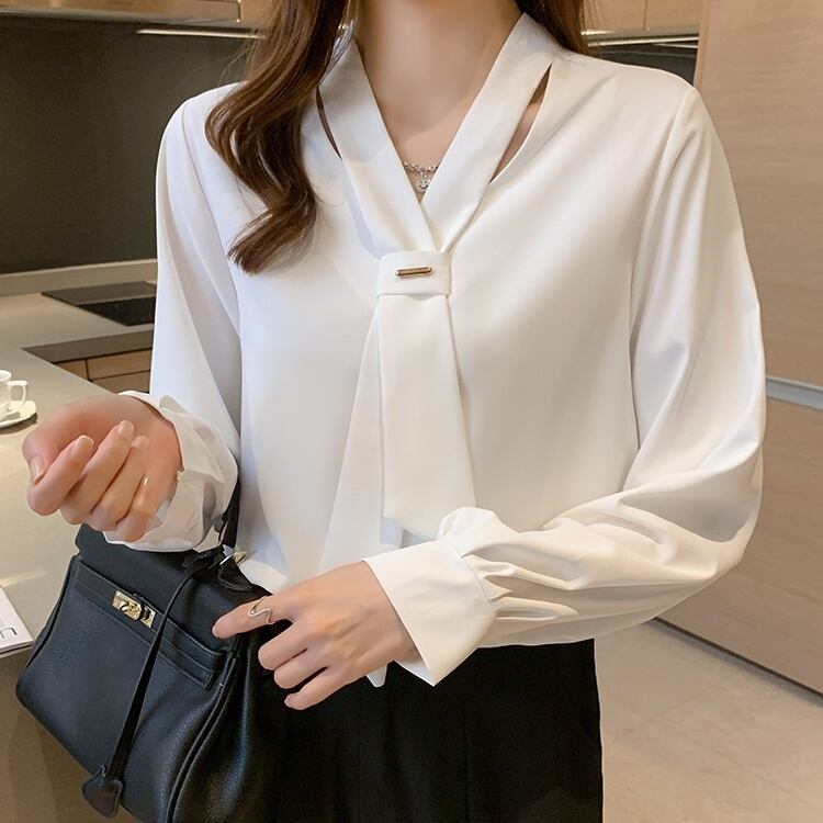 トップス ブラウス 長袖 Vネック シフォン レディース きれいめ 上品 エレガント 大きいサイズ 大きめ М L XL 2XL 3XL お洒落 オシャレ かわいい 大人可愛い 20代 30代 40代 50代 高級感 きれいめ 清楚 知的 美人 タイ付 リボン スカーフ 無地 ホワイト 白 ゆったり 体型カバー 着痩せ 薄手 オールシーズン 春 夏 秋 冬 ОL オフィス 仕事 通勤 入園 入学式 卒業式 卒園式 パーティー お呼ばれ 着回し シンプル 大人女子 こなれ感 シック モード 韓国