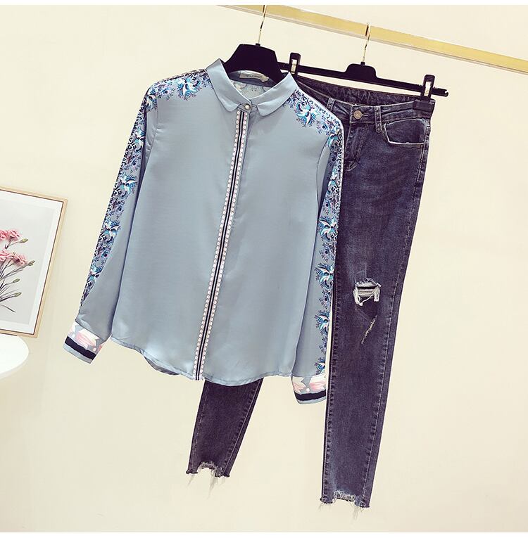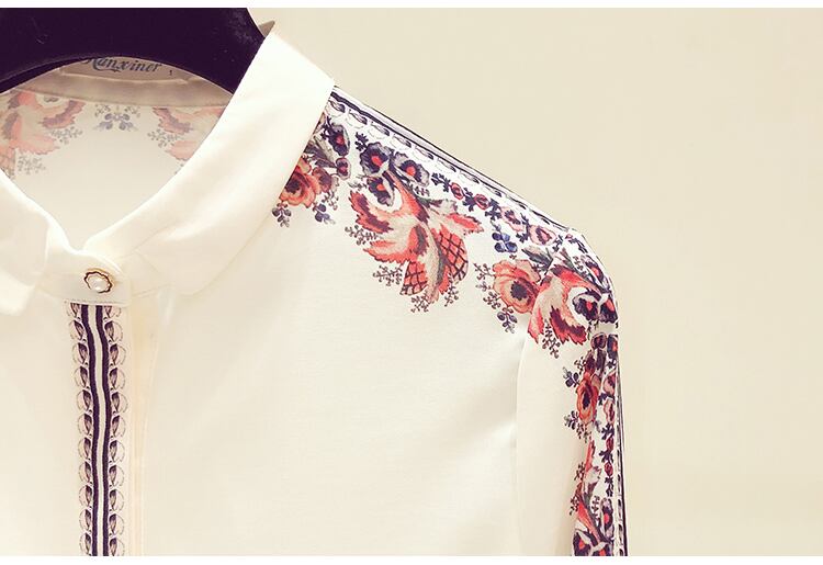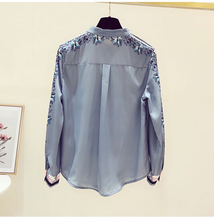 トップス ブラウス 花柄 プリント エレガント レディース 長袖 襟付き スタンドカラー 上品 高級感 きれいめ 華やか ゴージャス エスニック エキゾチック アジアン レトロ ヴィンテージ アンティーク ホワイト 白 ブルー 水色 青 春 秋 お洒落 オシャレ 個性派 個性的 カジュアル ラフ こなれ感 パーティー お呼ばれ 映え SNS 30代 40代 50代 60代 ゆったり 大きめ 大きいサイズ S М L XL 2XL 体型カバー 着痩せ 薄手 前開き 普段着 普段使い