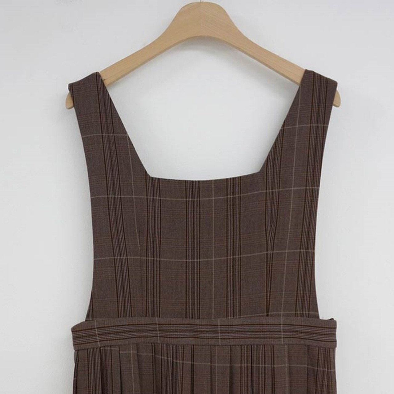 チェック柄プリーツジャンパースカート ワンピース レディース ジャンパースカート プリーツワンピース チェック柄 ノースリーブ ハイウエスト スクエアネック ジャンスカ ロング丈 ロングワンピース 茶色 ブラウン 大人可愛い きれいめ 上品 エレガント フォーマル ガーリー キュート レトロ 春 夏 秋 冬 二次会 お呼ばれ オフィス ビジネス OL 通勤 学生 通学 デート お出かけ パーティー イベント 女子会 休日 体型カバー 普段使い トレンド ゆったり インスタ映え くすみカラー アースカラー