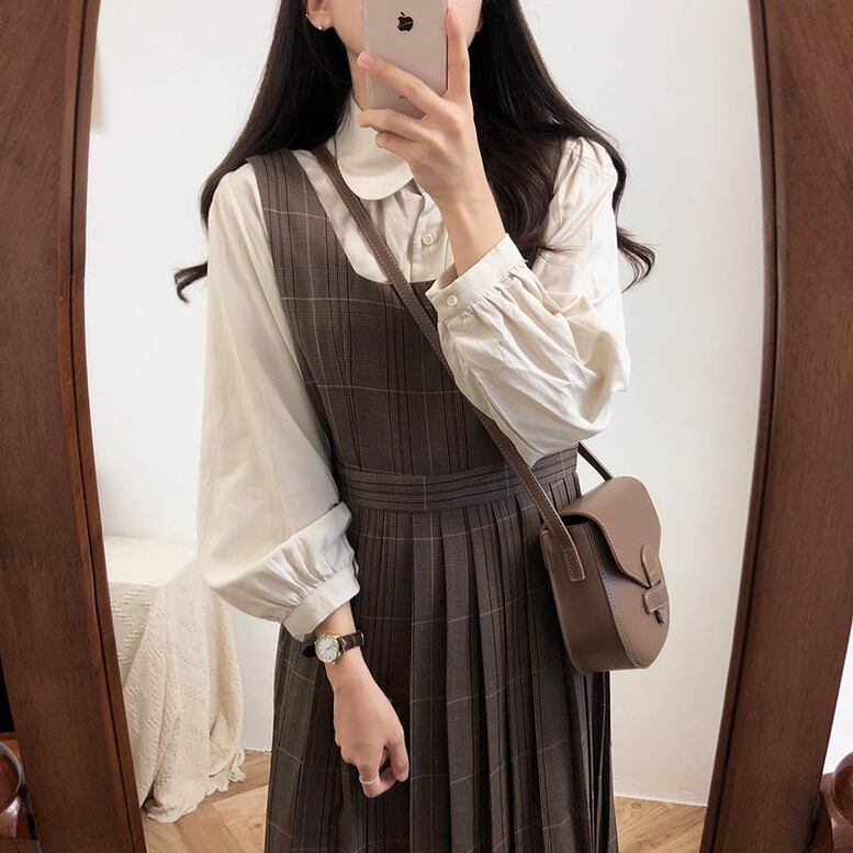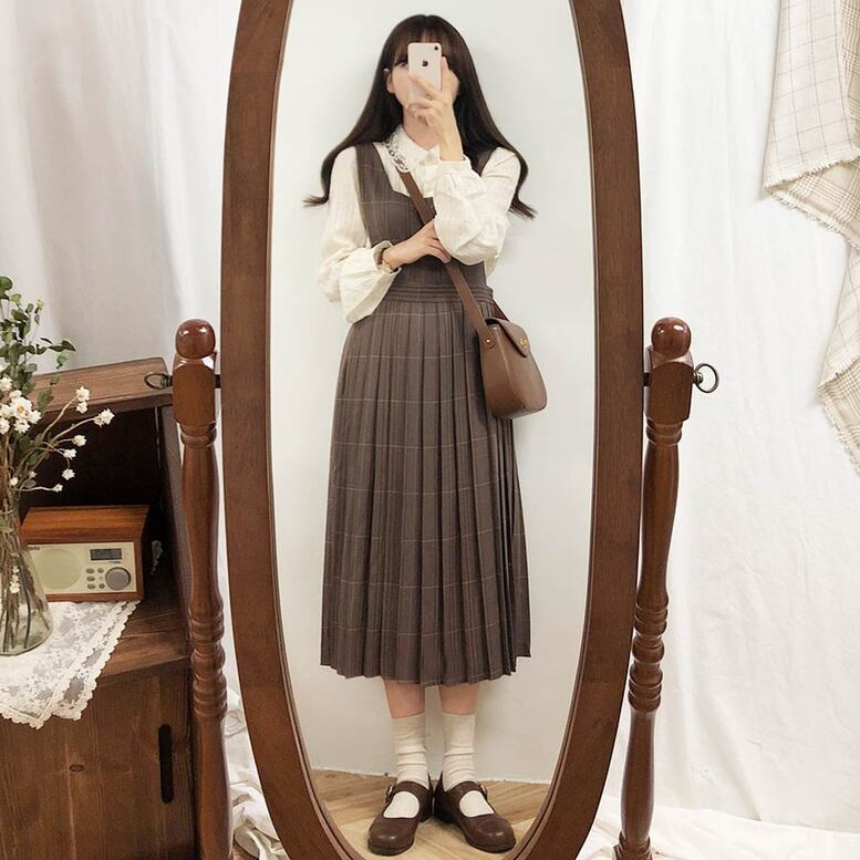 レトロでガーリーなプリーツスカートのジャンスカワンピ