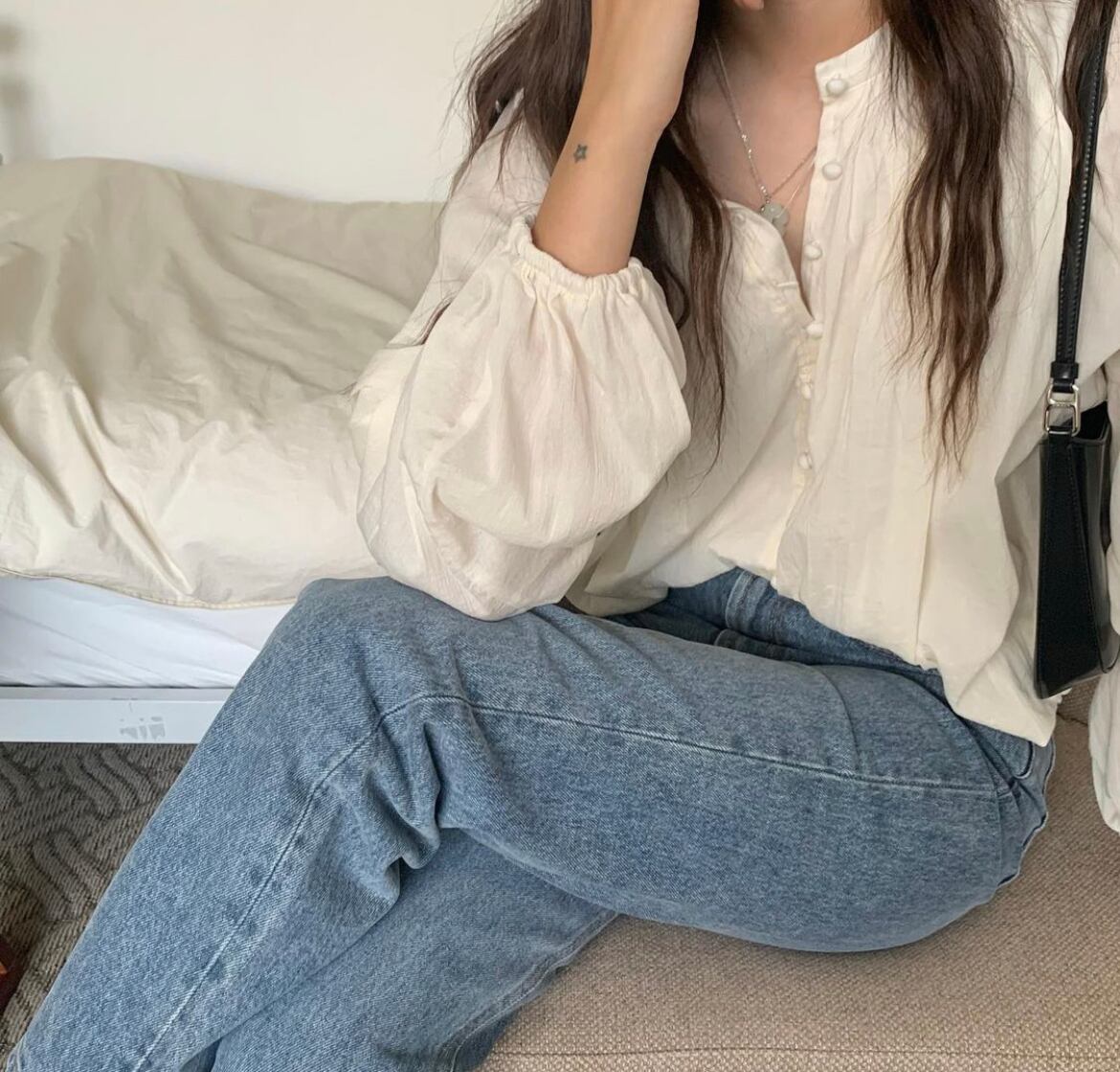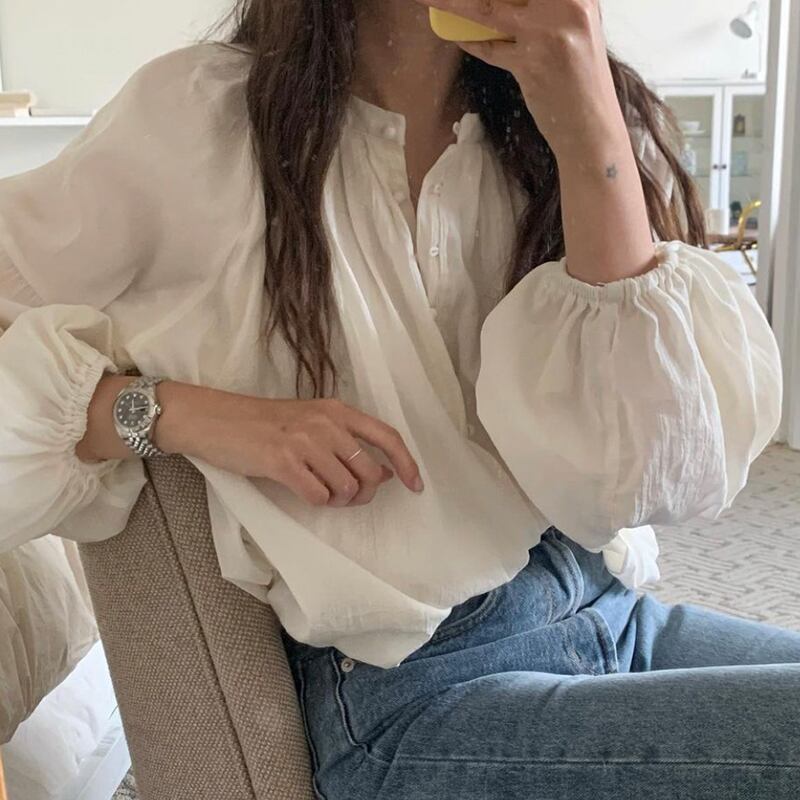 トップス シャツ 長袖 ランタンスリーブ ラウンドネック ボタン かわいい 大人可愛い きれいめ シンプル カジュアル 大人 上品 おしゃれ お洒落 レトロ 大人女子 こなれ感 ラフ ラブリー キュート ガーリー ルーズ 個性的 クール モード系 エレガント モダン 抜け感 無地 春 秋 10代 20代 30代 レディース 女性用 デート お出かけ 女子会 休日 アウトドア リゾート 旅行 韓国 ファッション コーデ スタイル 楽ちん 大きめ ワンサイズ 白 茶色