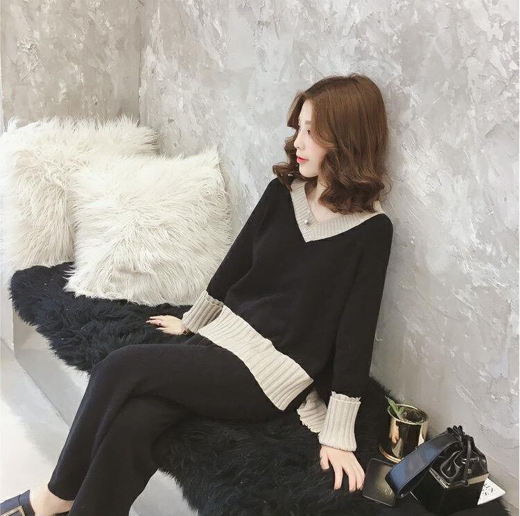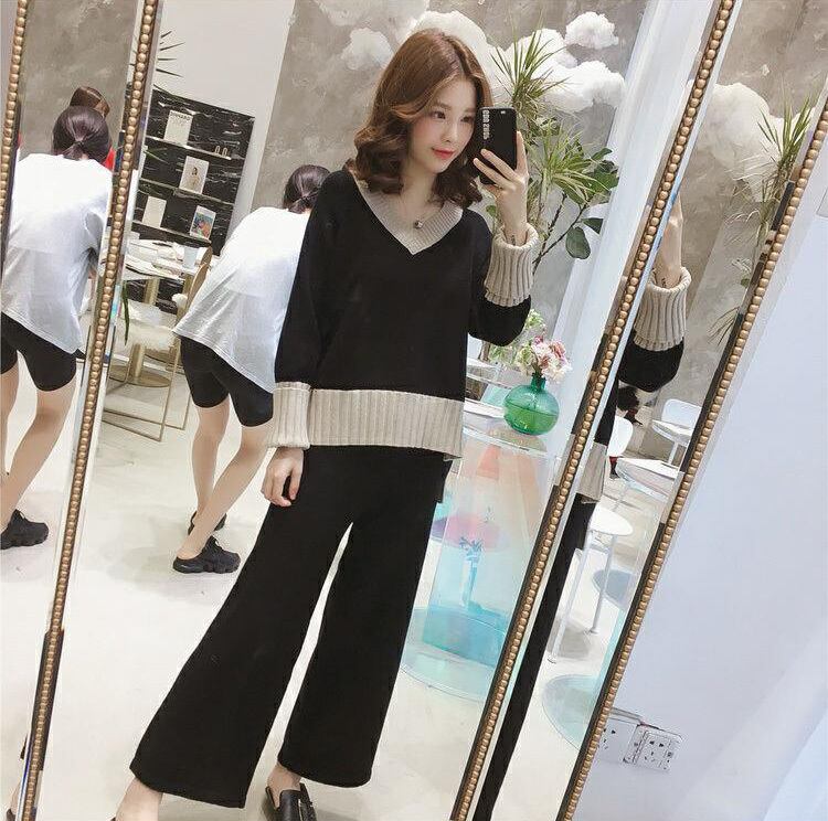 秋冬 セーター 上下セットアップ トップス パンツ セットアップ セーター プルオーバー ズボン 上着 ワイドパンツ 袖あり 長袖 ラウンドネック 襟なし スリム レギュラー 編み込み 伸縮性 異素材MIX ツーピース かわいい 大人可愛い カジュアル 大人 お洒落 大人女子 こなれ感 キュート クール 無地 秋 冬 レディース 女性用 ママ オフィス ビジネス OL 通勤 デート 休日 イベント レストラン 着回し スタイル 暖かい インスタ映え M L XL 2XL 3XL ブラック