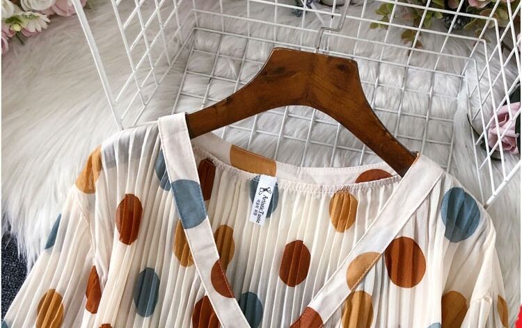 レトロ可愛い水玉柄にプリーツが入って、上品なデザイン。