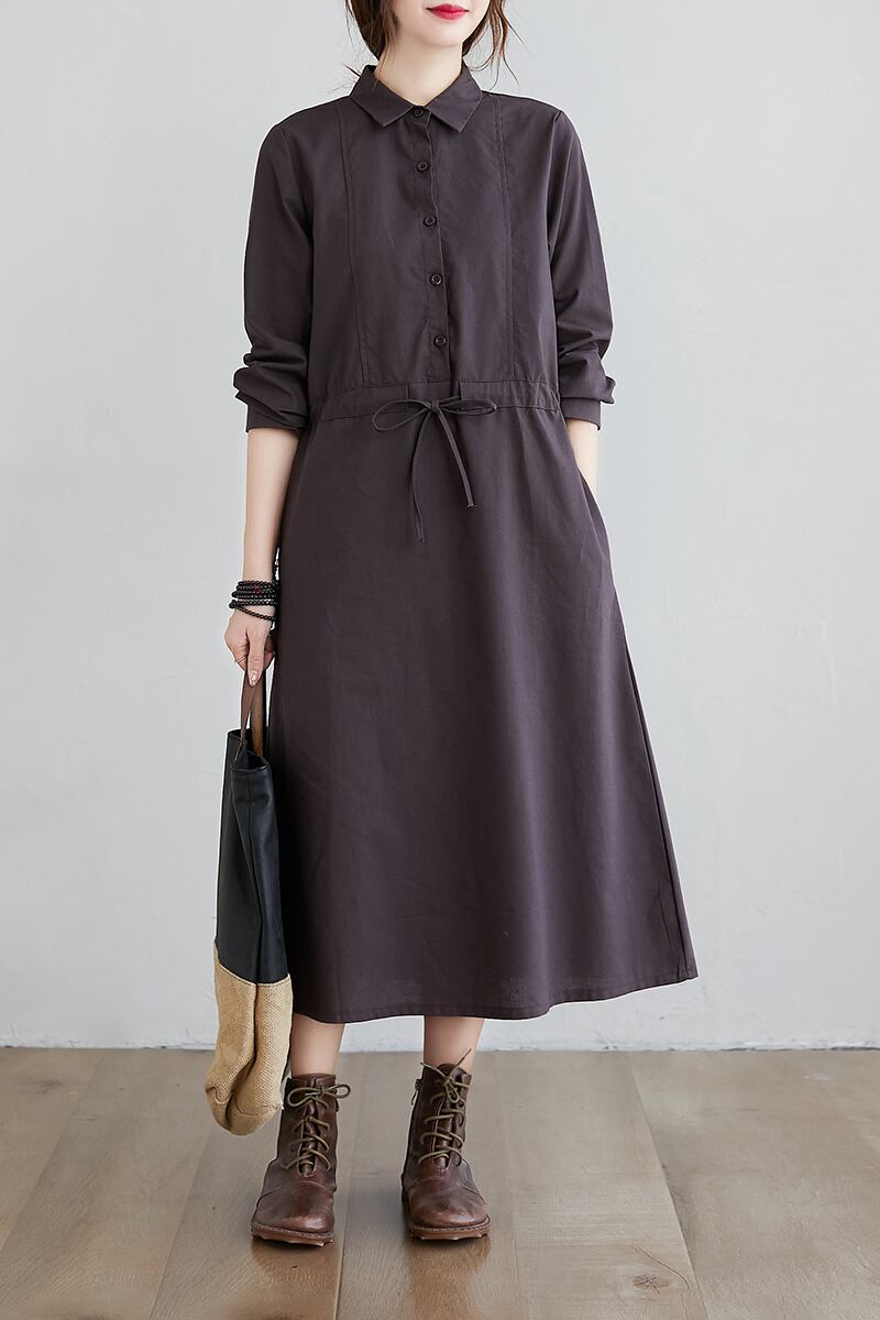 スカート ワンピース シャツ プルオーバー ミドル丈 長袖 ベルト 綿 リネン かわいい 大人可愛い シンプル カジュアル 大人 上品 おしゃれ お洒落 レトロ 大人女子 こなれ感 ラフ ラブリー キュート ガーリー ルーズ 個性的 クール モード系 無地 春 秋 10代 20代 30代 レディース 女性用 デート お出かけ 女子会 休日 高原 ホテル ガーデン レストラン 普段使い ファッション コーデ スタイル 楽ちん M L XL 2XL ブラウン ネイビー