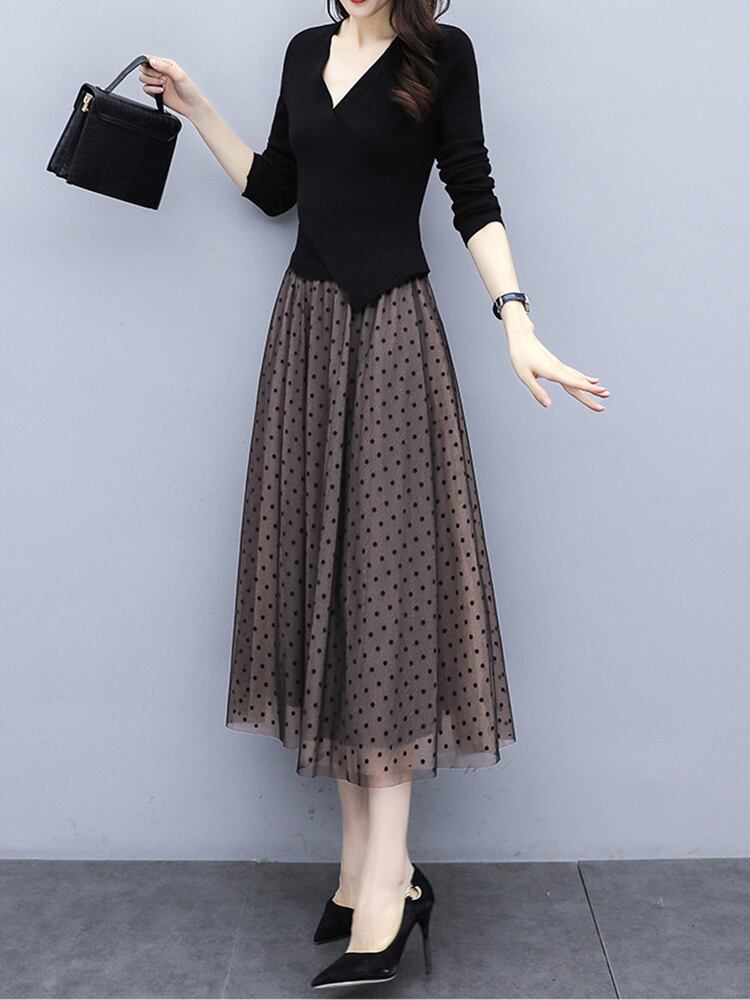 スカート ワンピース ドレス プルオーバー ロングスカート ミディスカート ミモレ ミモレ丈 ロング ロング丈 長袖 Vネック スリム 伸縮性 かわいい 大人可愛い きれいめ シンプル カジュアル 大人 上品 おしゃれ お洒落 かっこいい レトロ 大人女子 ラフ ラブリー キュート ガーリー ルーズ 個性的 クール モード系 エレガント 無地 春 秋 20代 30代 40代 レディース 女性用 デート お出かけ 休日 パーティー 韓国 S M L XL 2XL 黒