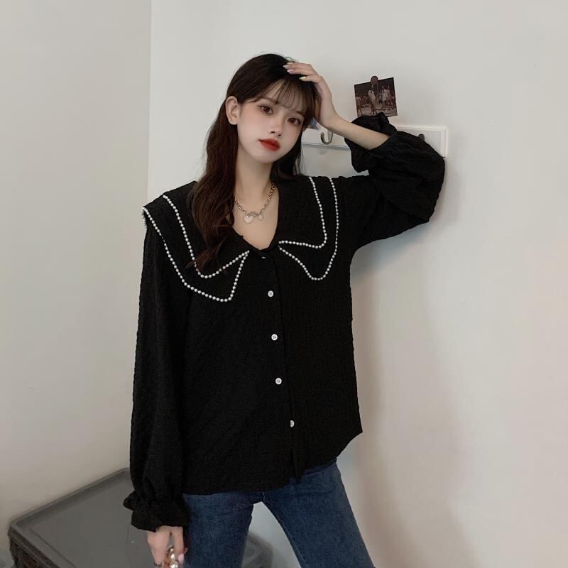シャツ ブラウス 襟付き 袖あり 長袖 クール ブラック 体型カバー かわいい 大人可愛い きれいめ シンプル カジュアル 大人 上品 おしゃれ お洒落 かっこいい レトロ アジアン エスニック エキゾチック 大人可愛い 大人女子 こなれ感 ラフ キュート ガーリー ルーズ 個性的 クール モード系 セクシー エレガント モダン 主役級 存在感 とろみ感 抜け感 春 秋 10代 20代 30代 女性用 ママ デート お出かけ 公園デビュー 女子会 休日 アウトドア 旅行 ガーデン 着回し 普段使い 重着