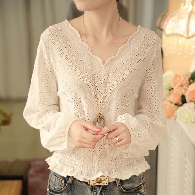 トップス ブラウス 総レース 長袖 レディース Vネック シャツ フリル スカラップ 透け感 エレガント 上品 清楚 高級感 きれいめ かわいい 大人可愛い ガーリー フェミニン カジュアル お洒落 オシャレ ゆったり 体型カバー 着痩せ 白 ホワイト 無地 韓国 トレンド 流行 春 夏 秋 量産型 姫系 ロリータ レトロ ヴィンテージ アンティーク 20代 30代 40代 着回し 重ね着 デート 女子会 モテ 映え とろみ 抜け感 こなれ感 映え SNS 華奢 清潔感 М L XL 2XL 華奢 鎖骨