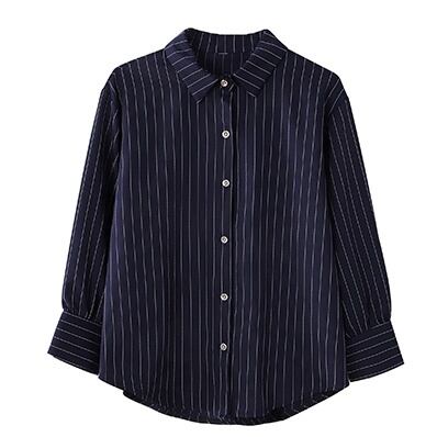 トップス ブラウス ストライプ 長袖 レディース きれいめ 上品 エレガントゆったり 大きめ S М L XL 2XL 大きいサイズ ホワイト ネイビー 白 フォーマル 定番 10代 20代 30代 40代 50代 60代 着回し シンプル カジュアル 王道 前開き ボタン ОL オフィス 通勤 仕事 普段着 普段使い 体型カバー 着痩せ 細見え Iライン ストレート 襟付き 冠婚葬祭 レトロ 襟付き シャツ ポケット リクルート 就職活動 入園 入学式 卒業式 卒園式 オールシーズン 春 夏 秋 冬