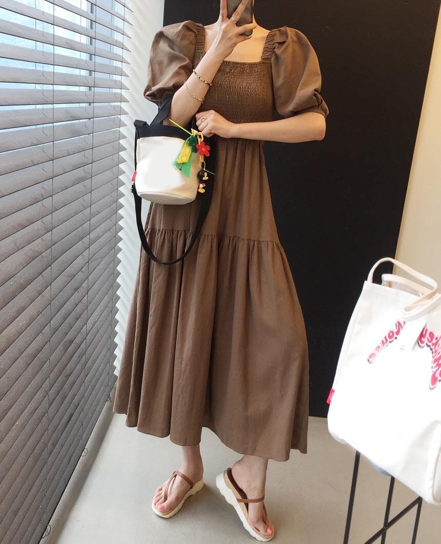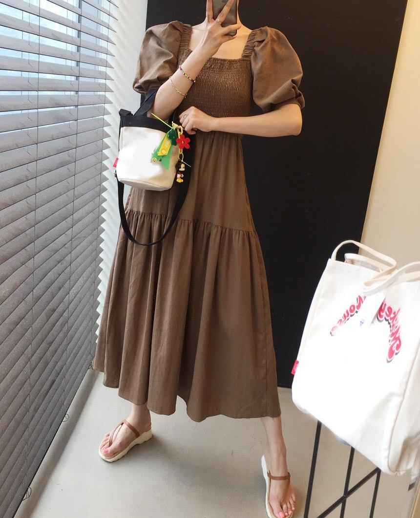 夏 プリーツ デザイン オールインワン ロングスカート プリーツスカート ワンピドレス ロング丈 袖あり 半袖 パフスリーブ スクエアネック 襟なし スリム 細身 プリーツ ウエストゴム 綿 かわいい 大人可愛い シンプル 大人 おしゃれ 大人女子 ラフ 個性的 モダン 無地 夏 10代 20代 レディース 女性用 ママ マタニティ 女の子 OL 通勤 学生 通学 お出かけ お泊まり イベント ガーデン 着回し コーデ 楽ちん 体系カバー インスタ映え ワンサイズ クリーミーホワイト ライトブラウン