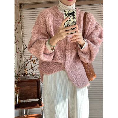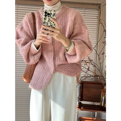 セットアップ 上下セット ニット カーディガン ワイドパンツ 長袖 レディース シンプル カジュアル ラフ ドロップショルダー モヘア ゆったり ボリューム ふんわり 無地 ピンク ホワイト 白 くすみカラー 20代 30代 40代 50代 60代 シンプル カジュアル 普段着 普段使い レトロ かわいい 大人可愛い オシャレ お洒落 春 秋 冬 プリーツ Iライン ストレート 体型カバー 着痩せ 細見え 韓国 トレンド 流行 前開き お得 お買い得 休日 リラックス お出かけ 買い物 S М L XL
