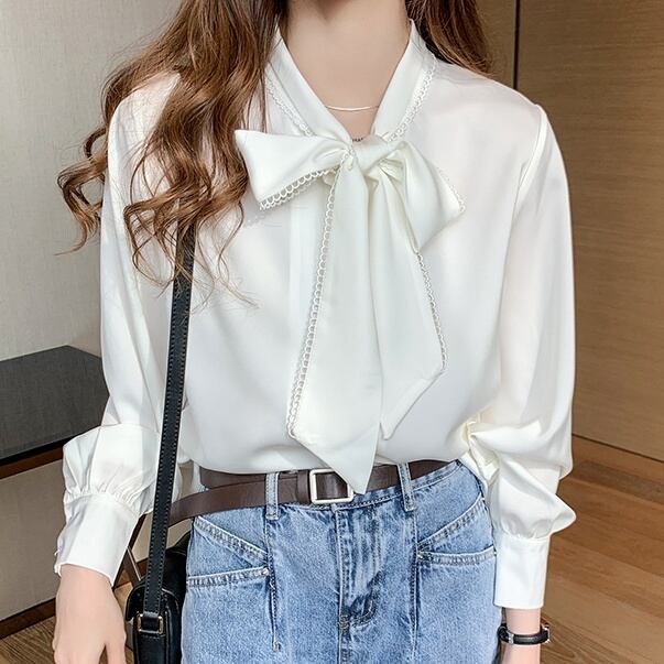 トップス ブラウス リボン タイ付 長袖 レディース きれいめ 上品 エレガント ゆったり 大きめ スカラップ フリル S М L XL 2XL 大きいサイズ 無地 ホワイト ブルー 水色 フォーマル 10代 20代 30代 40代 50代 Vネック 着回し シンプル カジュアル ОL オフィス 通勤 仕事 普段着 普段使い ゆったり 体型カバー 着痩せ 細見え Iライン ストレート 冠婚葬祭入園 入学式 卒業式 卒園式 量産型 姫系 オールシーズン 春 夏 秋 冬 シフォン 柔らか 着心地