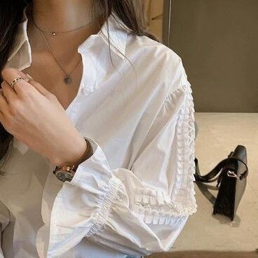 トップス ブラウス 長袖 フリル 編み上げ デザイン レディース きれいめ 上品 エレガント ゆったり 大きめ М L XL 2XL 3XL 4XL 大きいサイズ 無地 ホワイト 20代 30代 40代 50代 襟付き 前開き 着回し シンプル カジュアル 普段着 普段使い ゆったり 体型カバー 着痩せ 細見え Iライン ストレート 春 夏 秋 ボリューム 透かし 肌見せ セクシー ドロップショルダー かわいい 大人可愛い ガーリー クール レトロ ヴィンテージ アンティーク レース 韓国 流行