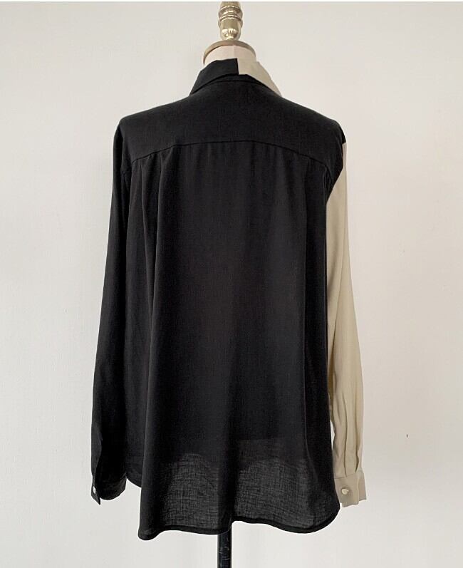 ブラウス レディース トップス シャツ ワンサイズ フリーサイズ ブラック 黒 バイカラー 無地 春 秋 襟付き 長袖 ゴールドボタン ショート丈 ミドル丈 ストレート ゆったり ママ フェミニン ナチュラル カジュアル きれいめ きれカジ 大人 大人可愛い こなれ感 ぬけ感 存在感 主役級 休日 お出かけ デート お呼ばれ 女子会 華やか モード スタイリッシュ シック クール マニッシュ 個性 ユニーク 定番 万能 着回し 王道 学生 通学 韓国 オルチャン 上品 エレガント きとんと感 清潔感