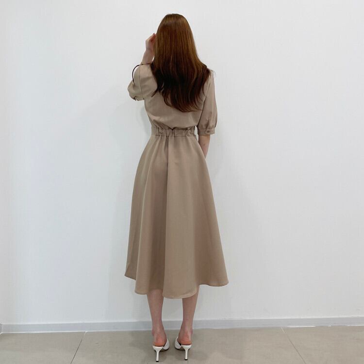 ワンピース レディース シャツワンピ ドレス S M L カーキ ネイビー 紺 バイカラー 大人カラー 秋カラー くすみカラー 春 夏 秋 5分袖 五分袖 パフスリーブ 襟付き アシンメトリー フレア Aライン 美ライン 美シルエット ロング丈 ロング ミモレ丈 膝下 ハイウエスト 脚長 スタイルアップ フェミニン ナチュラル きれいめ きれカジ カジュアル モテ ガーリー キュート 大人 大人可愛い 存在感 主役級 こなれ感 ぬけ感 デート お出かけ お呼ばれ きちんと感 上品 シック 韓国 オルチャン