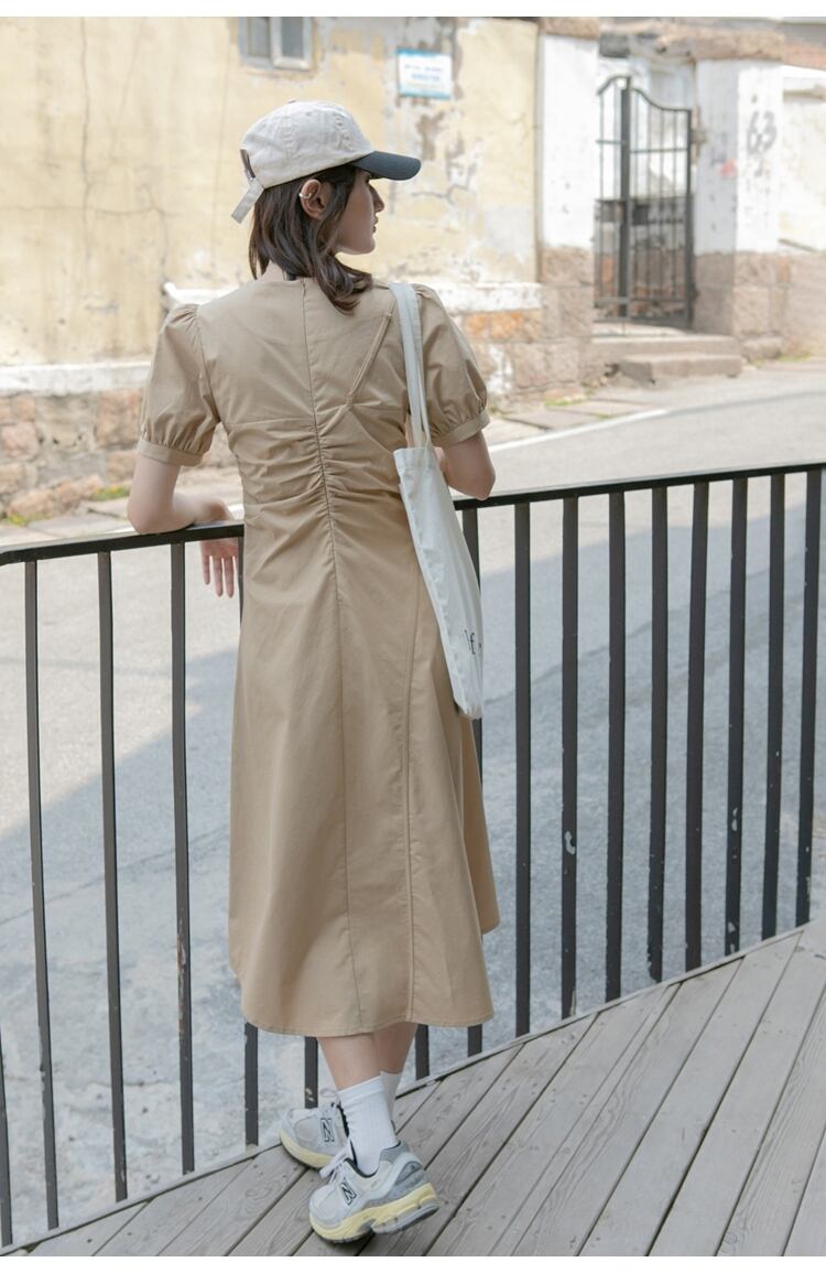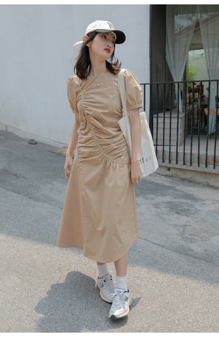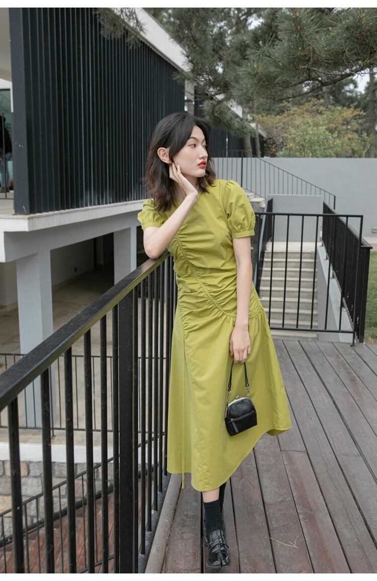 夏 フェアリードレス フレンチ オールインワン ロングスカート ワンピドレス ロング丈 袖あり 半袖 パフスリーブ ラウンドネック 襟なし スリム 細身 プリーツ ふわふわ ファスナー 透け感 薄手 普通生地(春夏用) かわいい シンプル お洒落 大人女子 ラブリー モダン 無地 夏 10代 20代 レディース 女性用 ママ マタニティ 女の子 オフィス ビジネス OL 通勤 学生 通学 デート 休日 パーティー ホテル 普段使い コーデ 楽ちん インスタ映え XS S M ホワイト グリーン カーキ