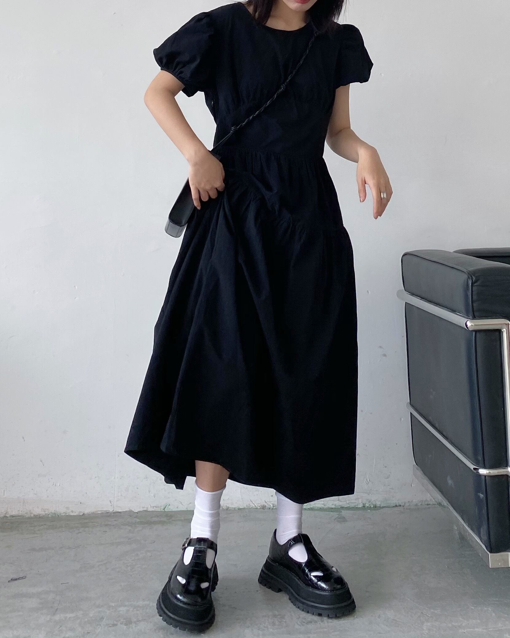 夏 カジュアル ドレス ロングスカート ワンピドレス ロング丈 袖あり 半袖 パフスリーブ ラウンドネック 襟なし スリム 細身 リボン ふわふわ ファスナー ハイウエスト 透け感 薄手 普通生地(春夏用) 大人可愛い シンプル おしゃれ レトロ こなれ感 キュート モダン 無地 夏 レディース 女性用 ママ マタニティ 女の子 オフィス ビジネス OL 通勤 学生 通学 デート 女子会 イベント ガーデン 普段使い ファッション 楽ちん インスタ映え S M L ホワイト ブラック