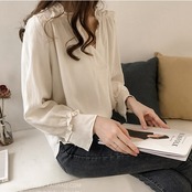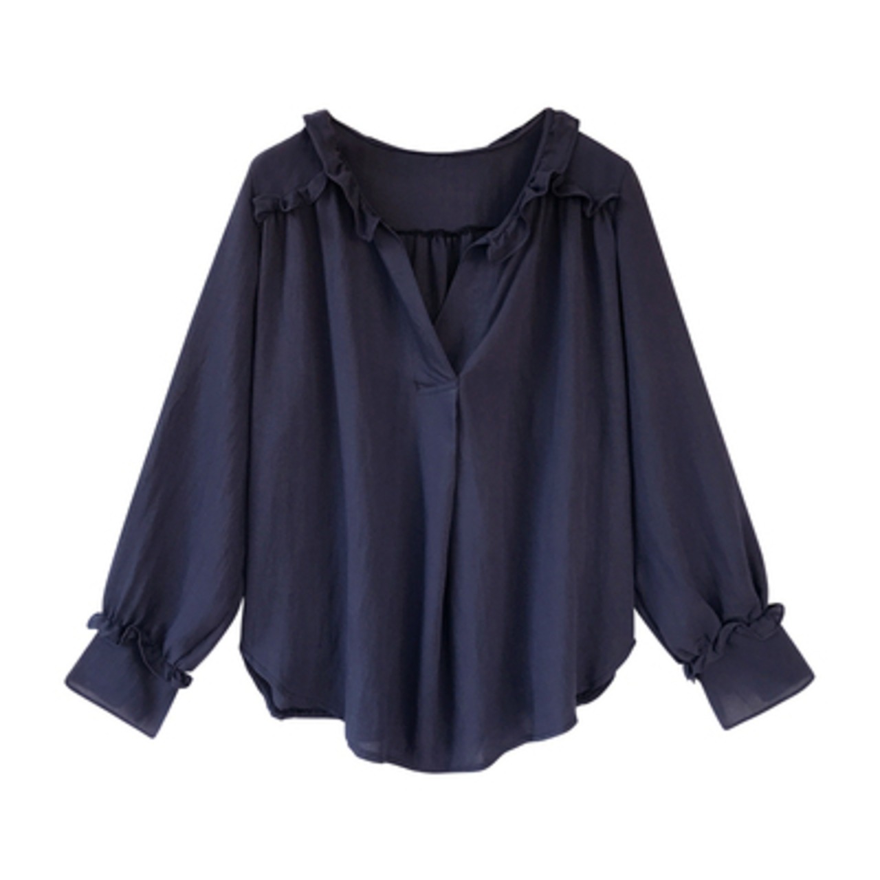 首周りと袖元のフリルでガーリーな雰囲気も。