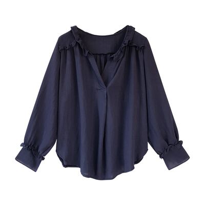 トップス ブラウス レース フリル 3色 シフォン 長袖 レディース Vネック カットソー エレガント 上品 清楚 高級感 きれいめ かわいい 大人可愛い ガーリー カジュアル お洒落 オシャレ ゆったり 体型カバー 着痩せ ベージュ イエロー 黄色 ネイビー 青 無地 韓国 トレンド 流行 春 夏 秋 レトロ ヴィンテージ アンティーク 30代 40代 50代 60代 とろみ 抜け感 こなれ感 清潔感 М L XL 2XL 休日 お出かけ ショッピング 大きめ 大きいサイズ くすみカラー シック