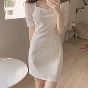 夏 ドレス デザイン プルオーバー ミディスカート ミディアム丈 袖あり 半袖 パフスリーブ スクエアネック 襟なし スリム 細身 Aライン レギュラー ファスナー ハイウエスト 透け感 タイプA 薄手 異素材MIX ツーピース 大人可愛い きれいめ カジュアル 大人 上品 おしゃれ 大人女子 キュート セクシー 無地 夏 10代 20代 レディース 女性用 ママ マタニティ 女の子 OL 学生 お出かけ お泊まり イベント レストラン 着回し スタイル モテ インスタ映え S M L XL ホワイト