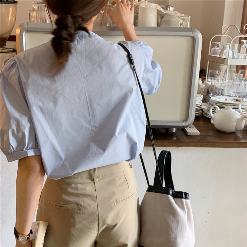 夏 プリーツ シャツ トップス シャツ ブラウス ショート丈 袖あり 半袖 パフスリーブ ラウンドネック 襟なし 細身 レギュラー プリーツ 前開き 透け感 ボタン 薄手 アクリル 普通生地(春夏用) ツーピース 大人可愛い カジュアル 大人 おしゃれ 大人女子 クール モダン 無地 夏 10代 20代 レディース 女性用 ママ マタニティ 女の子 オフィス ビジネス OL 通勤 学生 通学 お泊まり 休日 パーティー ガーデン 着回し コーデ インスタ映え ワンサイズ ホワイト ブルー アプリコット