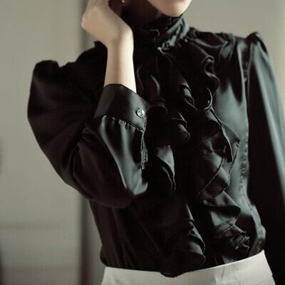 ボリュームのある胸元のフリルがゴージャスなブラウスです。