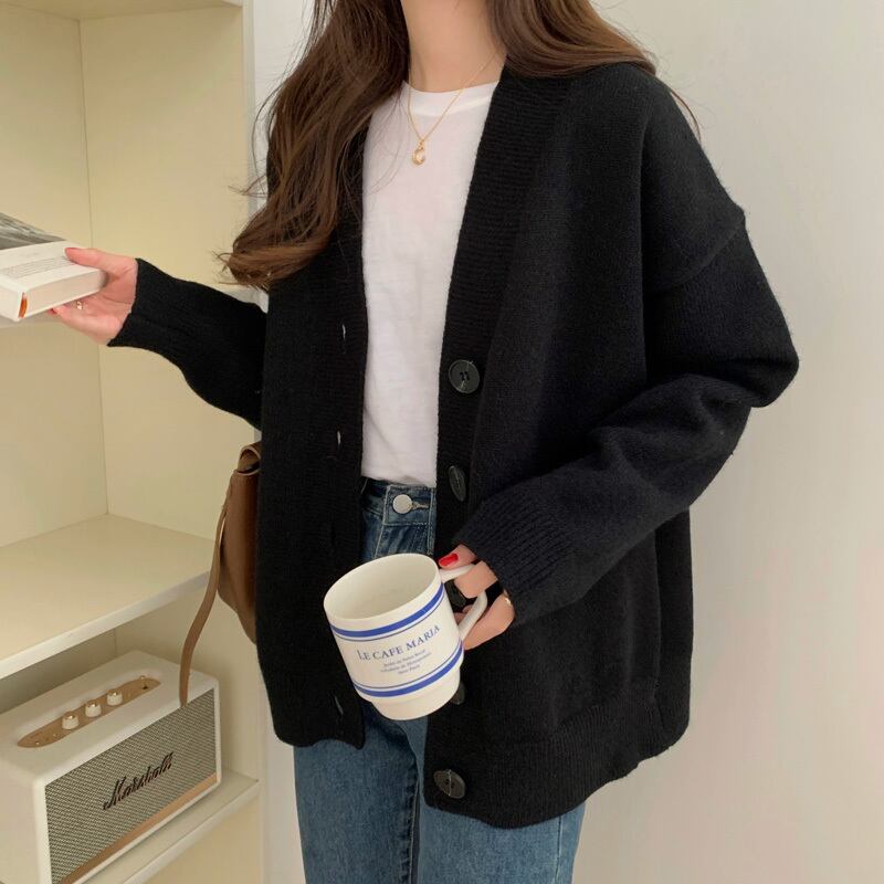 トップス カーディガン 袖あり 長袖 ドロップショルダー 萌袖 Vネック 襟なし ワイド 前開き ニット かわいい 大人可愛い シンプル カジュアル おしゃれ お洒落 大人女子 こなれ感 ラフ ルーズ 主役級 存在感 抜け感 無地 秋 冬 10代 20代 30代 40代 50代 60代 レディース 女性用 デート お出かけ 公園デビュー 女子会 休日 旅行 着回し 普段使い 重ね着 韓国系 オルチャン ファッション コーデ スタイル 楽ちん 体系カバー 定番 サイズ S M L ゆったり 色展開 ブラック