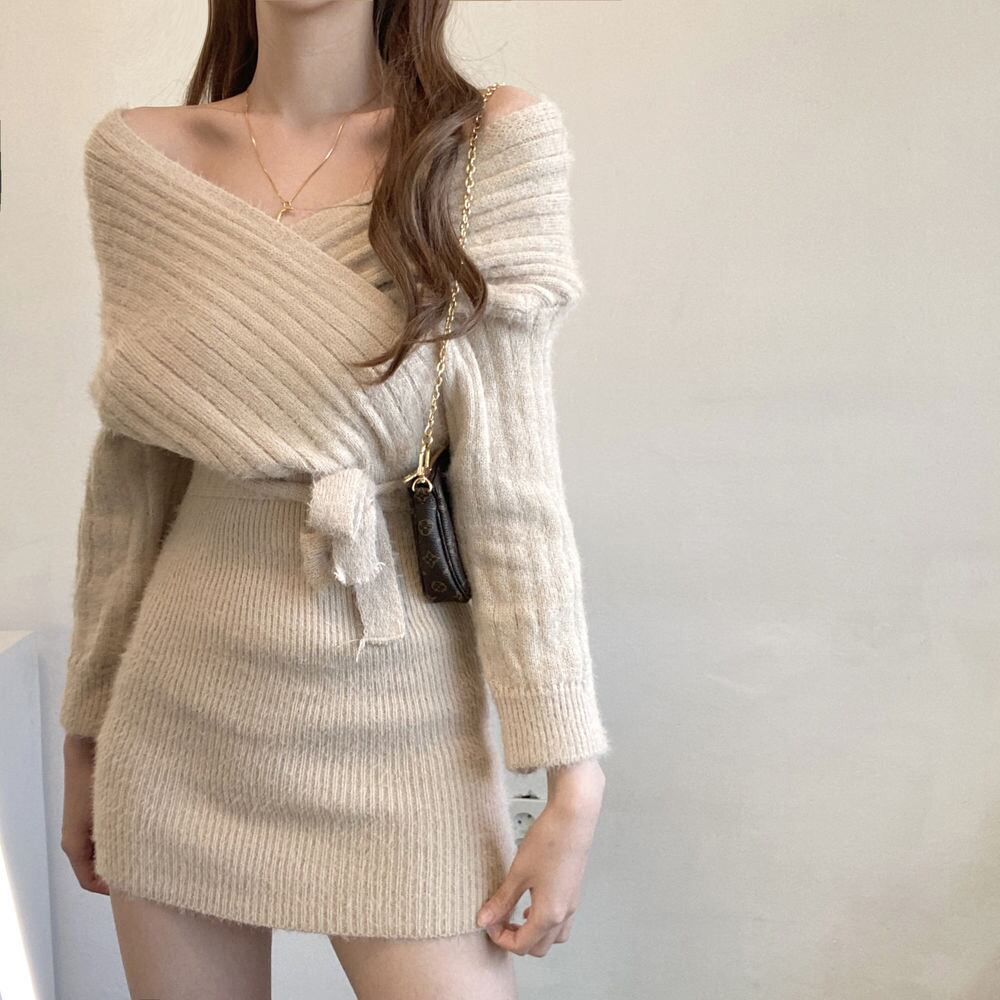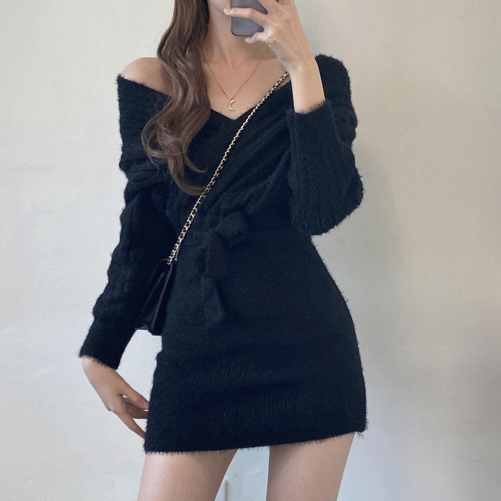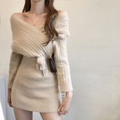 ニット レディース トップス セーター プルオーバー ワンサイズ フリーサイズ アプリコット ホワイト 白 ブラック 黒 大人カラー 秋カラー ニュアンスカラー 秋 冬 長袖 Vネック オフショルダー ショート丈 クロップド丈 コンパクト リボン スタイルアップ 2way フェミニン ナチュラル カジュアル きれいめ きれカジ 大人 大人可愛い こなれ感 ぬけ感 休日 お出かけ デート モテ ガーリー キュート 存在感 主役級 シンプル 定番 万能 着回し こなれ感 ぬけ感 学生 通学 韓国 オルチャン