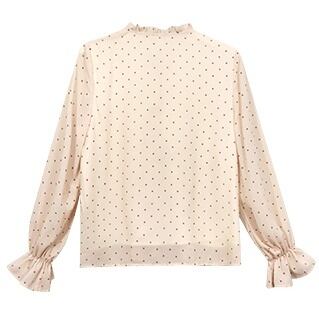 トップス ブラウス シフォン ドット 長袖 レディース フリル きれいめ 上品 エレガント 清楚 高級感 S М L プリント ベージュ ブラウン 10代 20代 30代 40代 着回し シンプル カジュアル ОL オフィス 通勤 仕事 普段着 普段使い 着痩せ 細見え Iライン ストレート 入園 入学式 卒業式 卒園式 オールシーズン 春 夏 秋 冬 柔らか 着心地 華やか 量産型 ロリータ 姫系 ガーリー フェミニン かわいい 大人可愛い 新作 2022 裏地 透け感 ぽわん ふんわり 映え SNS