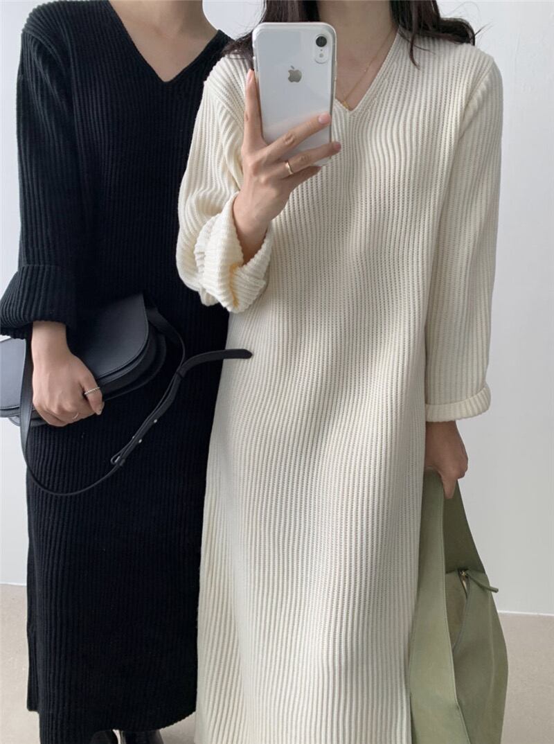 ワンピース レディース ニットワンピース ロング丈 袖あり 長袖 Vネック ストレート Iライン 大人可愛い シンプル カジュアル 大人 上品 おしゃれ お洒落 大人女子 こなれ感 抜け感 ワンサイズ フリーサイズ リブ 無地 アイボリー 黒 ブラック 春 秋 冬 10代 20代 30代 40代 50代 60代 ママ ゆる ゆったり 学生 通学 デート お出かけ 女子会 休日 イベント 旅行 モテ 定番 プレゼント ギフト 普段使い お揃い 双子 韓国 オルチャン 楽ちん 体型カバー