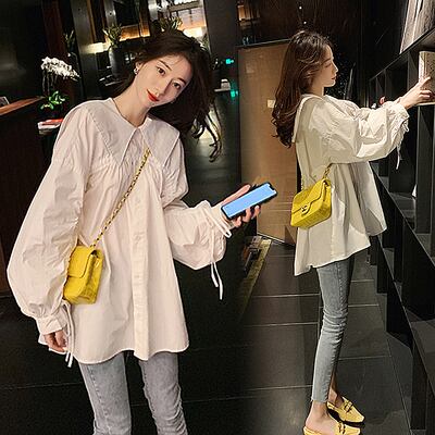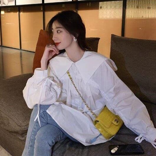 トップス ブラウス ビッグカラー 長袖 レディース オーバーサイズ セーラー襟 清楚 かわいい 大人可愛い ガーリー フェミニン シンプル カジュアル お洒落 オシャレ 大きめ 大きいサイズ М L XL 2XL ゆったり 体型カバー 着痩せ ホワイト 白 韓国 トレンド 流行 春 夏 秋 レトロ 10代 20代 30代 女子会 インスタ 映え こなれ感 SNS 休日 お出かけ ショッピングドロップショルダー 小顔 マタニティ 妊婦 ママ 妊娠 パフスリーブ ランタンスリーブ ボリューム Aライン