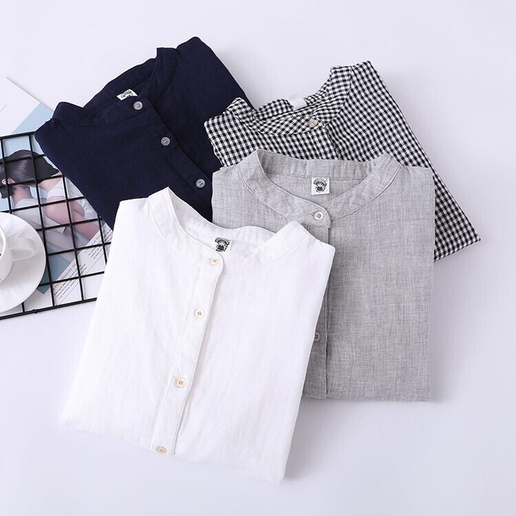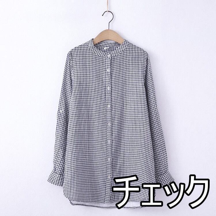 トップス ブラウス 4色 長袖 ゆったり 前開き レディース きれいめ 上品 エレガント 大きいサイズ 大きめ S М L XL ホワイト 白 グレー 灰色 ネイビー 紺 チェック 格子柄 総柄 無地 モノクロ くすみカラー お洒落 オシャレ かわいい 大人可愛い レトロ 20代 30代 40代 50代 60代 ОL 通勤 入学式 卒業式 入園式 卒園式 フォーマル 無地 シンプル カジュアル 綿 コットン 通気性 着心地 春 秋 冬 こなれ感 オフィス クール ロング丈 休日 お出かけ 買い物 公園