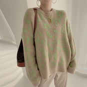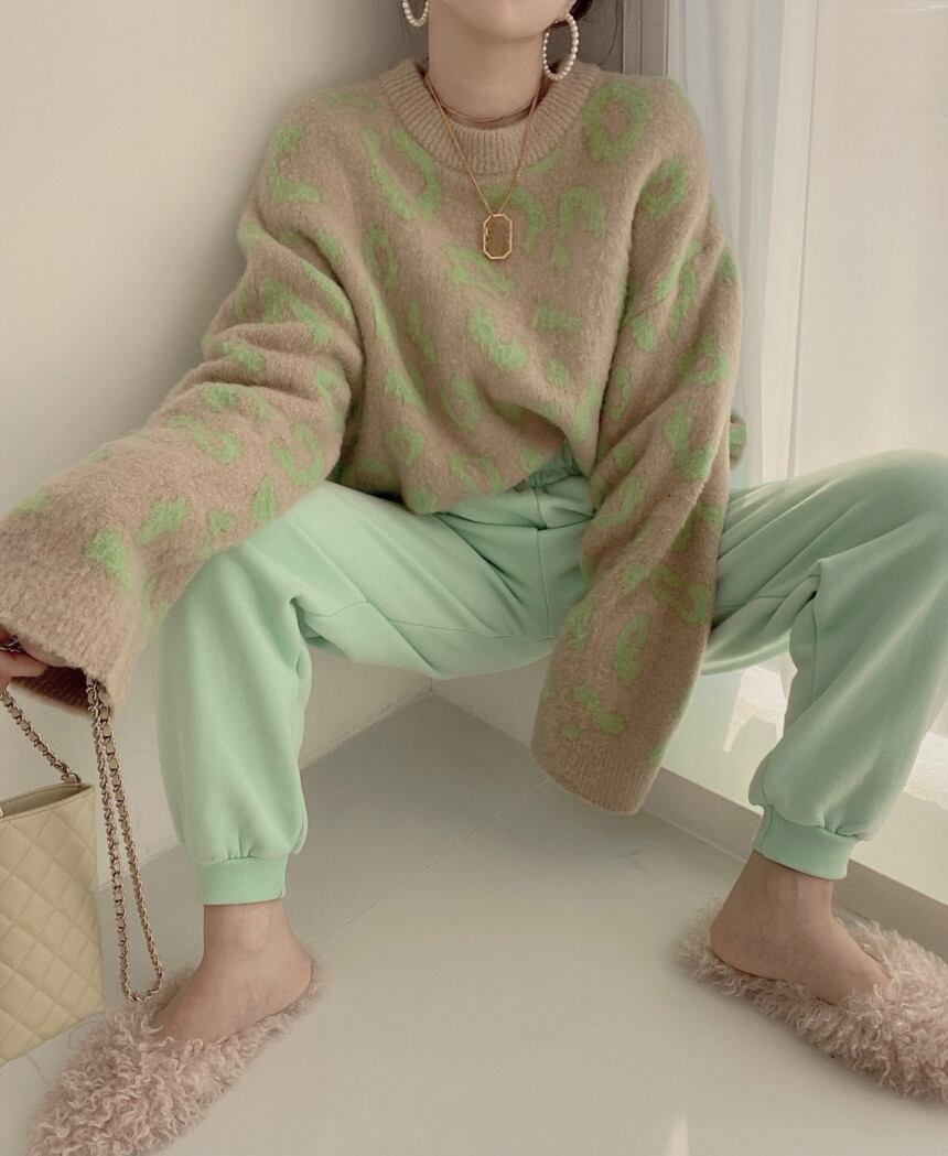 トップス レディース ニット セーター プルオーバー 袖あり 長袖 萌袖 ドロップショルダー ラウンドネック ふわふわ モコモコ もこもこ かわいい 大人可愛い カジュアル おしゃれ お洒落 かっこいい こなれ感 ラフ 個性的 ルーズ モダン 主役級 存在感 抜け感 ワンサイズ フリーサイズ ベージュ イエロー 黄色 アイボリー 黒 ブラック ヒョウ柄 レオパード柄 アニマル柄 春 秋 冬 10代 20代 30代 40代 50代 ママ 通学 学生 お出かけ 女子会 休日 アウトドア イベント 旅行