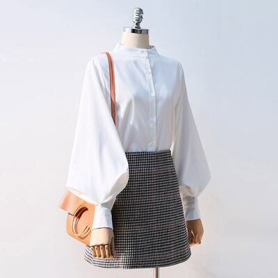 トップス ブラウス カットソー 3色 ランタンスリーブ 長袖 ゆったり レディース きれいめ 上品 エレガント 大きいサイズ 大きめ S М L XL ベージュ アプリコット ブルー 青 ホワイト 白 お洒落 オシャレ かわいい 大人可愛い レトロ 20代 30代 40代 50代 ОL 通勤 仕事 オフィス 入学式 卒業式 入園式 卒園式 シンプル カジュアル 着心地 春 秋 冬 こなれ感 休日 お出かけ 買い物 公園 仕事 トレンド 韓国 流行 前開き 高級感 個性的 主役 存在感 ふんわり ボリューム