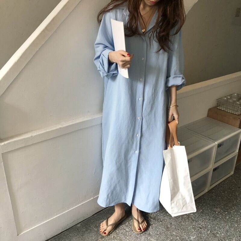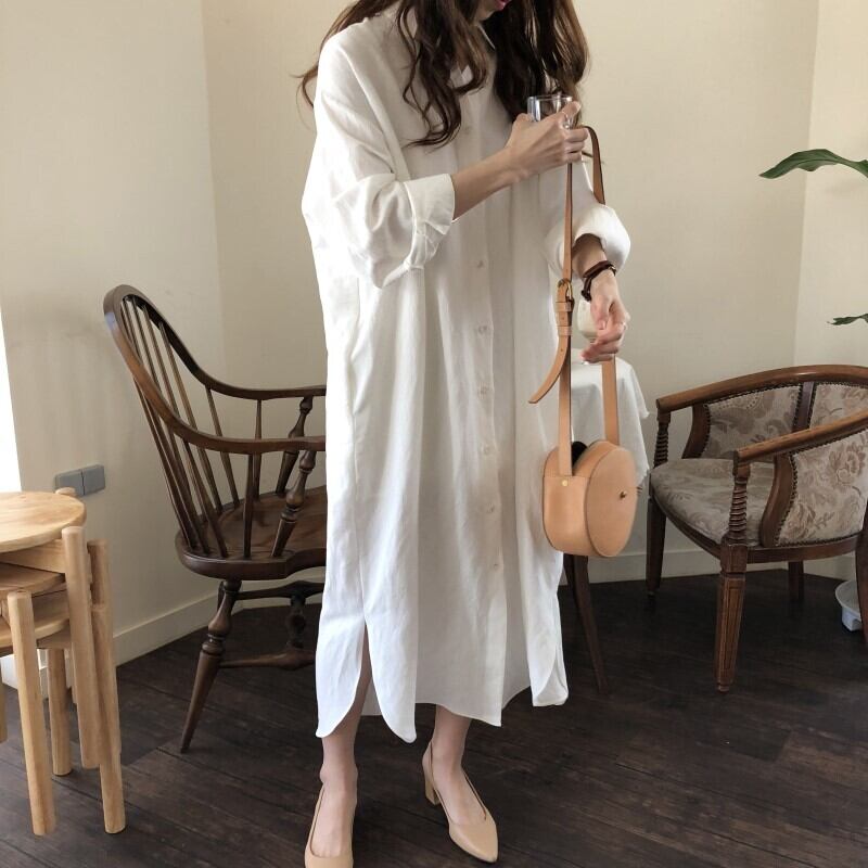 春秋 ロング シャツワンピース アウター ワンピース シャツスカート シャツワンピース ミディアム丈 袖あり 長袖 Vネック 襟付き ストレート レギュラー プリーツ ふわふわ 前開き 透け感 ボタン 綿 薄手 異素材MIX 大人可愛い シンプル おしゃれ メンズライク 個性的 無地 春 秋 10代 20代 レディース 女性用 ママ 女の子 OL 学生 お泊まり イベント ガーデン 普段使い 重ね着 スタイル 楽ちん インスタ映え S M L ホワイト ブルー