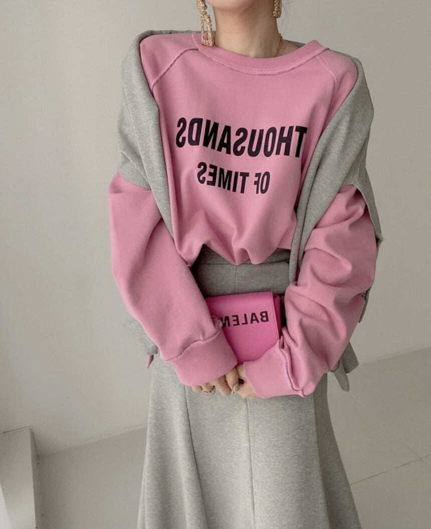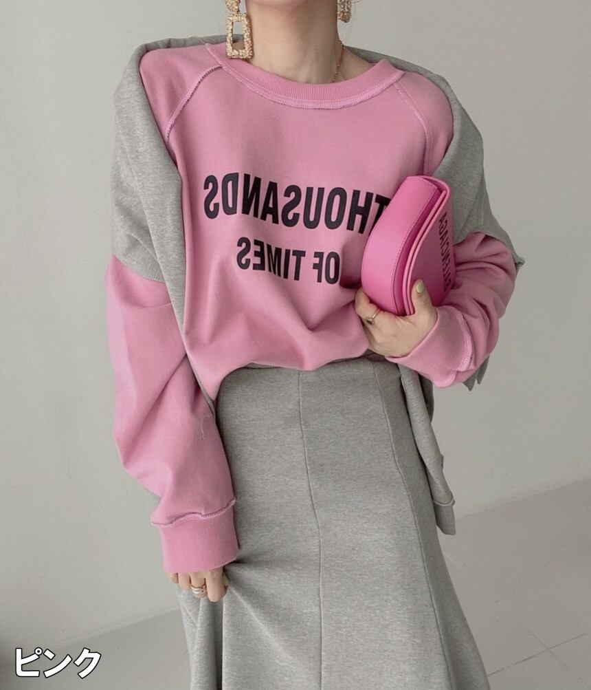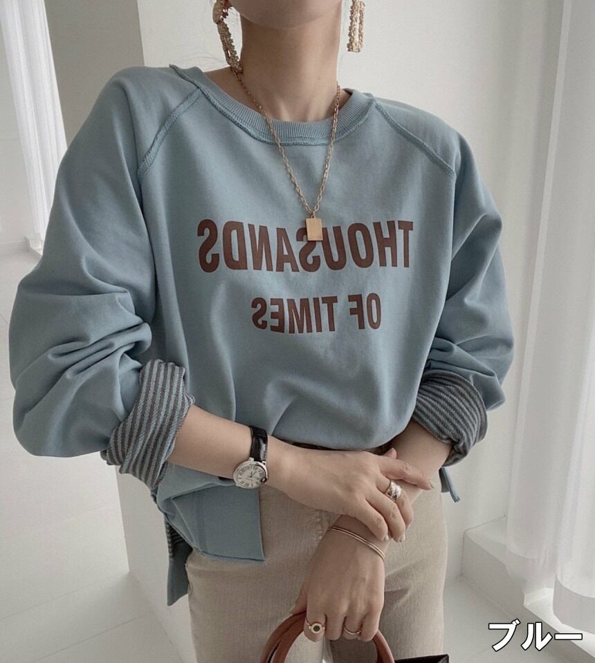 スウェット レディース トップス トレーナー プルオーバー リバーシブル 2way ワンサイズ フリーサイズ ブラック 黒 グレー 灰色 ベージュ ピンク ブルー 青 大人カラー くすみカラー ロゴ プリント ボーダー しましま 秋 冬 クルーネック ラウンドネック 長袖 ルーズ ゆったり ゆる オーバーサイズ ストカジ ストリート ママ フェミニン カジュアル ナチュラル きれカジ 大人 大人可愛い こなれ感 ぬけ感 存在感 主役級 個性 ユニーク 学生 通学 休日 お出かけ 着回し 韓国 オルチャン