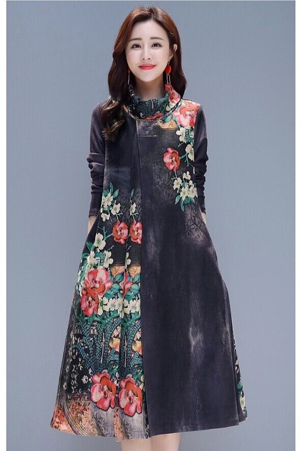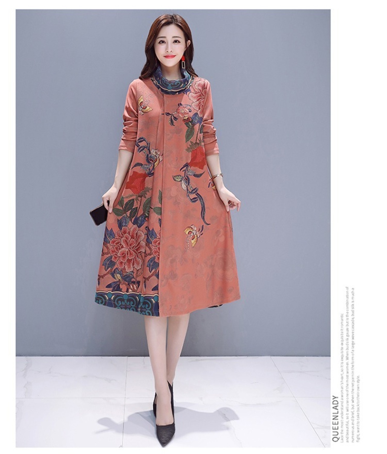 ワンピース 膝下 ミモレ ミモレ丈 袖あり 長袖 ボリューム袖 Uネック ハイネック フレア ワイド Aライン ポケット 大人可愛い きれいめ カジュアル 上品 おしゃれ レトロ アジアン エスニック エキゾチック 大人女子 個性的 エレガント モダン 主役級 存在感 花柄 小花柄 フラワー レディース 女性用 体系カバー M L XL 2XL 3XL 4XL 大きいサイズ ゆったり ゆる 黒 ブラック 赤 レッド 緑 グリーン 黄色 イエロー くすみカラー ニュアンスカラー