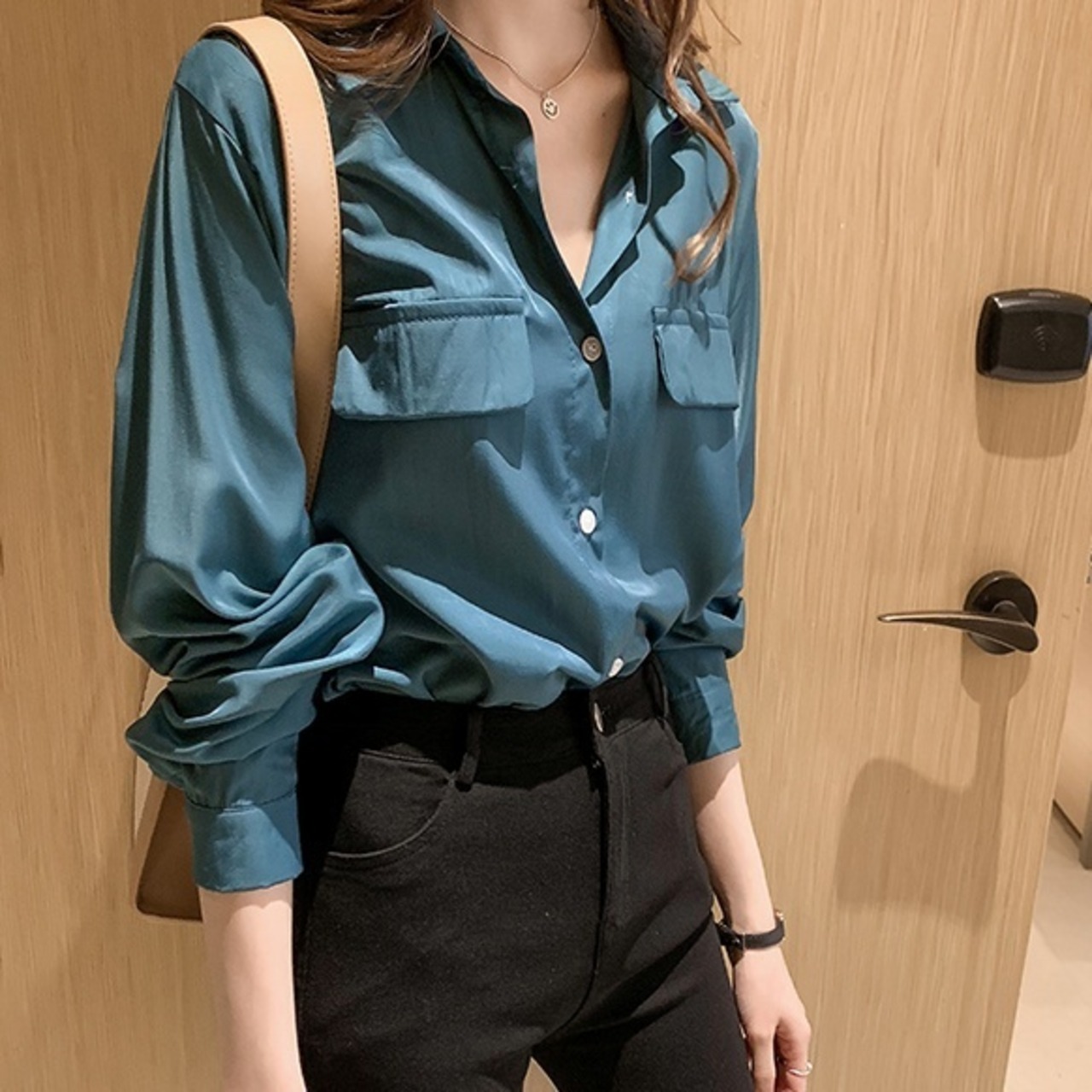 トップス ブラウス 4色 長袖 ゆったり レディース きれいめ 上品 エレガント 大きめ 大きいサイズ プラスサイズ М L XL 2XL 3XL 4XL グリーン 緑 ブルー 青 ホワイト 白 黒 ブラック くすみカラー お洒落 オシャレ かわいい 大人可愛い レトロ 20代 30代 40代 50代 60代 ОL 通勤 仕事 オフィス シンプル カジュアル 着心地 春 秋 こなれ感 休日 お出かけ 買い物 公園 仕事 オフィス 無地 とろみ 女子会 デート 韓国 トレンド 流行 前開き ボタン 薄手