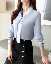 トップス ブラウス リボン タイ付 長袖 レディース きれいめ 上品 エレガント 高級感 大きめ S М L XL 2XL ホワイト 白 ベージュイエロー 黄色 ブルー 水色 お洒落 オシャレ かわいい 大人可愛い 20代 30代 40代 50代 ОL 通勤 仕事 オフィス シンプル カジュアル 着心地 オールシーズン 夏 春 秋 冬 こなれ感 休日 お出かけ 買い物 公園 柔らか 女子会 デート 韓国 トレンド 流行 Vネック 清楚 Iライン ストレート バイカラー シック 知的 シフォン 薄手