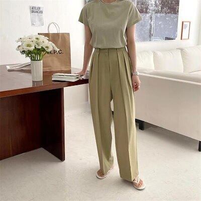 ボトムス レディース ワイドパンツ タックパンツ テーパードパンツ ツータック 大人可愛い きれいめ シンプル 大人 上品 おしゃれ お洒落 かっこいい 大人女子 こなれ感 ラフ メンズライク マニッシュ クール 抜け感 S M L アイボリー 緑 グリーン 青 ブルー 無地 春 夏 秋 冬 オールシーズン シーズンレス オフィス ビジネス OL 通勤 通学 学生 お出かけ 休日 女子会 旅行 楽ちん プレゼント ギフト オルチャン 韓国 着回し 普段使い お揃い 双子